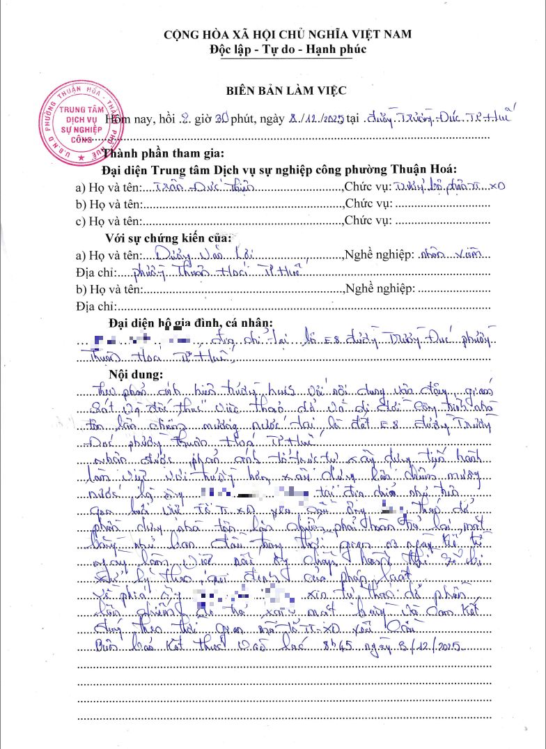 Vấn đề Quý Ông/Bà phản ánh, UBND phường Thuận Hóa đã chỉ đạo Trung tâm Dịch vụ sự nghiệp công phường xin thông báo kết quả như sau: