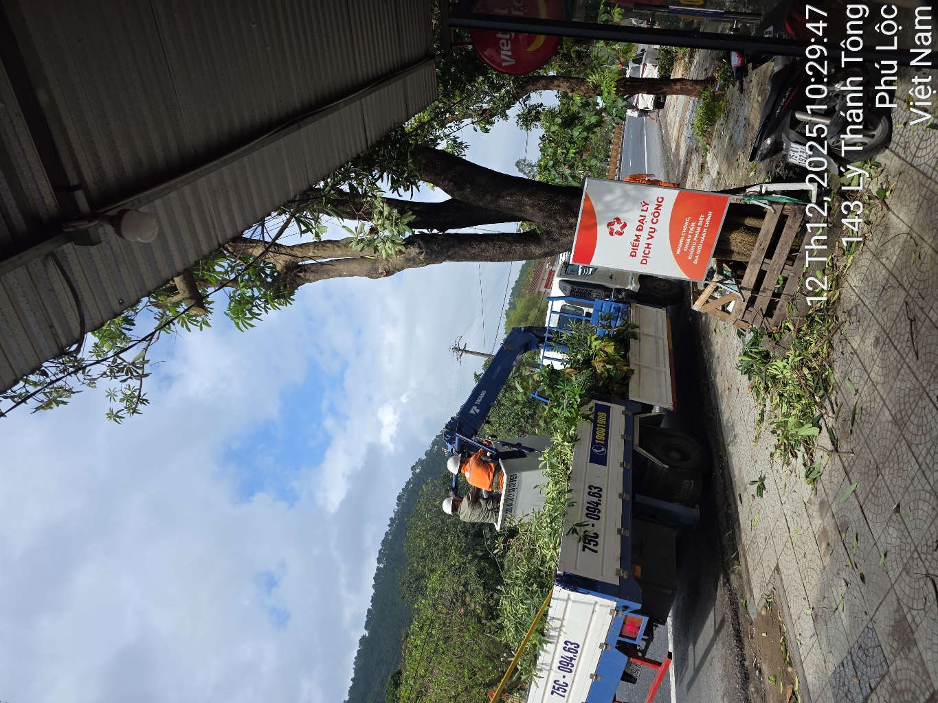 Điện lực Việt Nam EVN sau khi chặt, tỉa cây vỉa hè không dọn vệ sinh trước 145 Lý Thánh Tông, Phú Lộc, Huế để cành cây đã chặt lơ lửng trên dây điện gây nguy hiểm.