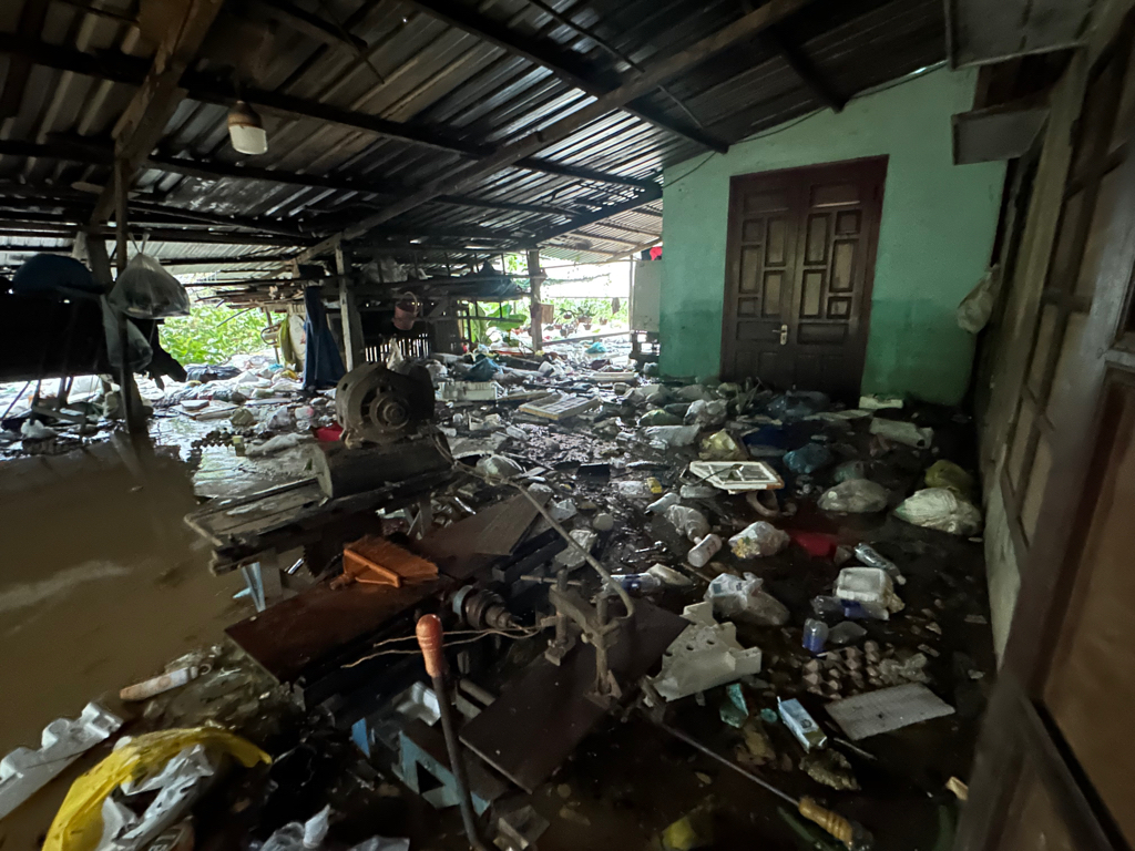 Khu vực cuối xóm – nơi nhà tôi sinh sống – có một lớp bèo dày tồn tại từ trước, đã chắn ngang dòng hói, khiến mỗi khi có lũ, toàn bộ rác thải bị dồn ứ và tấp vào khu vực nhà tôi bốc mùi hôi thối. Sau đợt lũ ngày 28/10, lượng rác tấp về rất nhiều, gây tắc nghẽn dòng chảy và ô nhiễm môi trường nghiêm trọng. Mặc dù đã có biện pháp rào chặn trước xóm nhưng lũ lớn cộng với lượng rác quá lớn đã xô ngã rào chắn khiến hàng tấn rác tràn vào khu vực xóm.