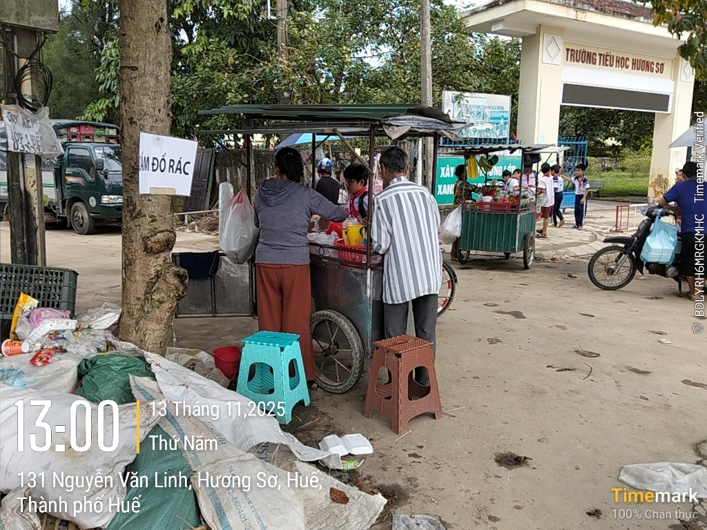 Tại trước cổng trường Tiểu học Hương Sơ, địa chỉ: 133 Nguyễn Văn Linh, Hương An, TP Huế đang tồn đọng 1 đống rác rất lớn sau đợt lũ cuối tháng 10/2025. Tôi thấy đã bóc mùi hôi thối rất nhiều, rất tội cho các cháu học sinh đến trường, tiền ẩn nguy cơ bệnh tật rất lớn. Đề nghị công ty liên quan phải cho lực lượng dọn dẹp, vệ sinh ngay, xin cảm ơn rất nhiều