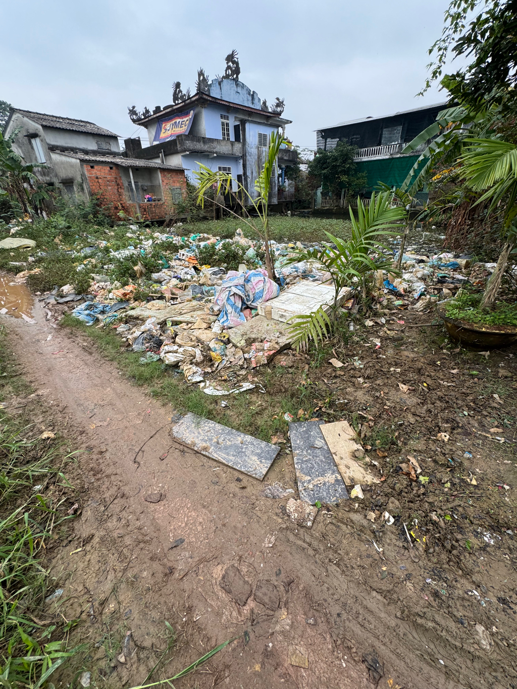 Rác trôi về tụ tập rất nhiều tại bãi đất trống giao trong kiệt giao nhau giữa đường Nguyễn Chí Thanh và đường Nguyễn Gia Thiều gây ô nhiễm môi trường chung. Ảnh chụp lúc 7 giờ 25 phút sáng ngày 19/12/2025.
