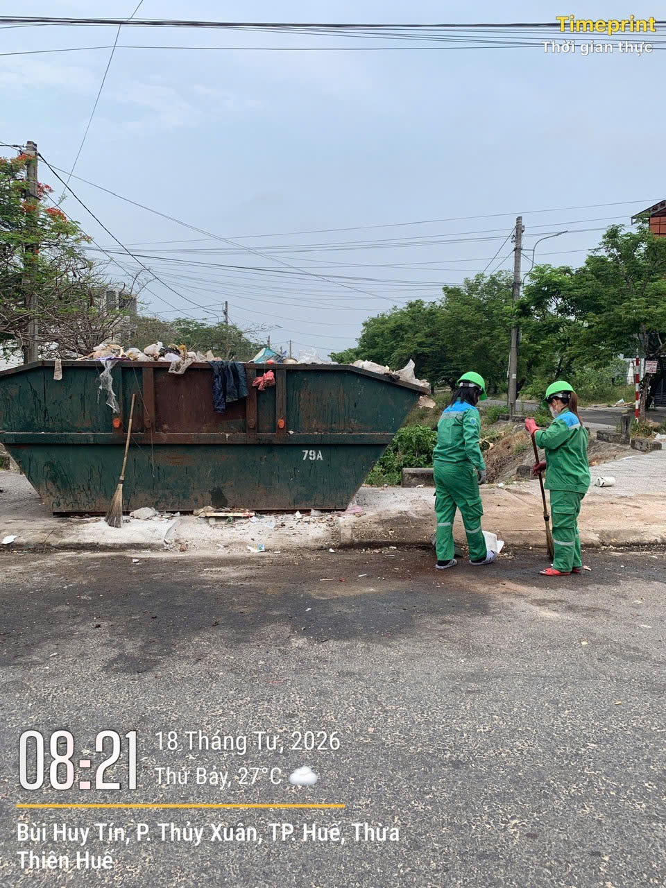 Sau khi tiếp nhận phản ánh, Trung tâm đã tiến hành kiểm tra thực tế tại khu vực đường Bùi Huy Tín – Hà Huy Chúc. Tại thời điểm kiểm tra, ghi nhận khu vực đã được Công ty Môi trường Đô thị Huế dọn dẹp sạch sẽ. Đồng thời, Trung tâm đã tuyên truyền các hộ dân lân cận thực hiện việc đổ rác đúng nơi quy định. Qua ghi nhận, phần lớn rác thải tại khu vực này được tập kết từ nhiều nơi. Hiện nay, Công ty Môi trường Đô thị Huế đã có kiến nghị đến Trung tâm Quản lý và Khai thác Hạ tầng thành phố để đề xuất phương án xử lý phù hợp (đính kèm hình ảnh).