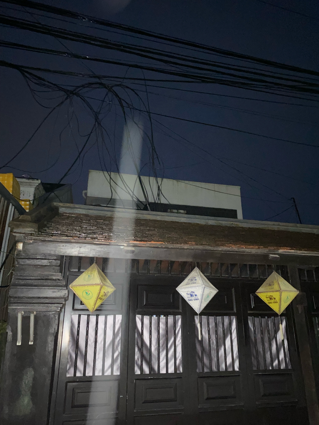 Rất nhiều dây cáp (không rõ của điện hay nhà mạng) rơi tự do như vậy và phần dưới cùng là nằm trên mái ngói của mái nhà. Nhà này lợp ngói liệt, loại ngói dễ vỡ. Gia đình đã báo bên điện lực, điện lực về xem và trả lời của viễn thông. Bên gia đình dùng VNPT, có gọi VNPT nhưng VNPT bảo không phải của họ. Rất mong Hue-S giúp đỡ giải phóng giúp mớ dây đó để đảm bảo an toàn cho mái nhà ở khu phố cổ. Xin cảm ơn nhiều.