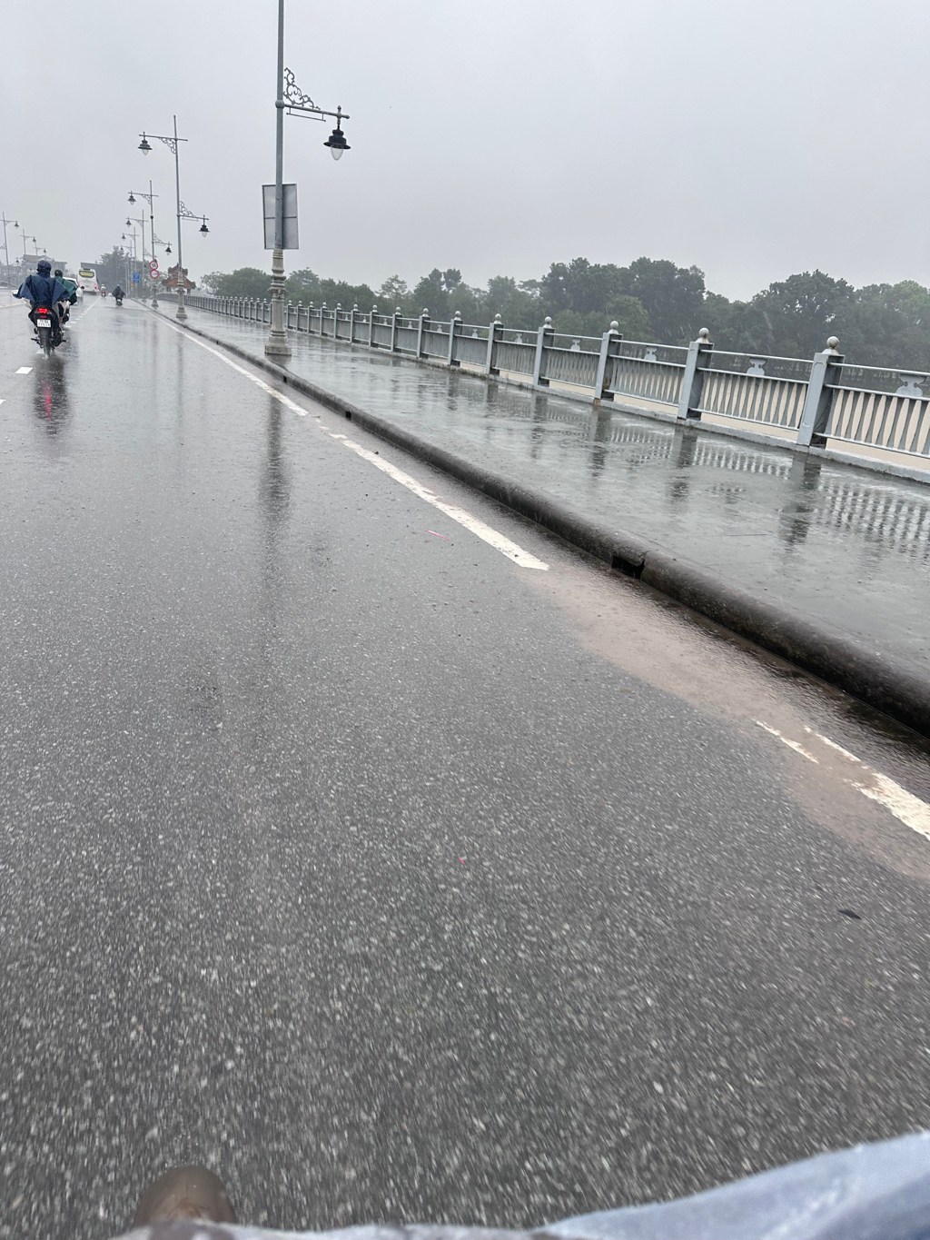 Trên cầu Dã Viên hai bên mạn cầu vị trí chỗ thoát nước mưa bị kẹt rác hay đất mà nước mưa rút rất chậm, đọng lại nhiều khi xe đi qua bắn nước lên xe xung quanh gây nguy hiểm. Mong cơ quan chức năng xem xét khơi thông những lỗ thoát nước hai bên thành cầu để nước mưa được thoát nhanh hơn.