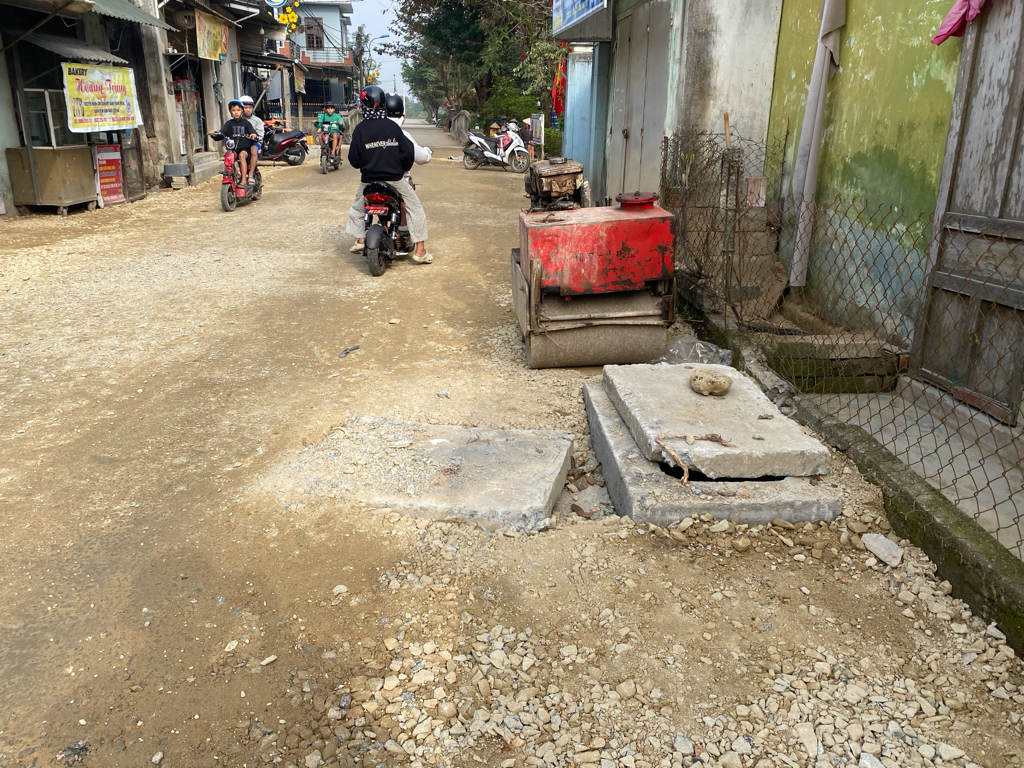 1. Tuyến đường liên thôn này là tuyến chính, kết nối các thôn của xã, lòng đường nhỏ dẫn đến tình trạng kẹt xe, nền đường đã bị hư hỏng