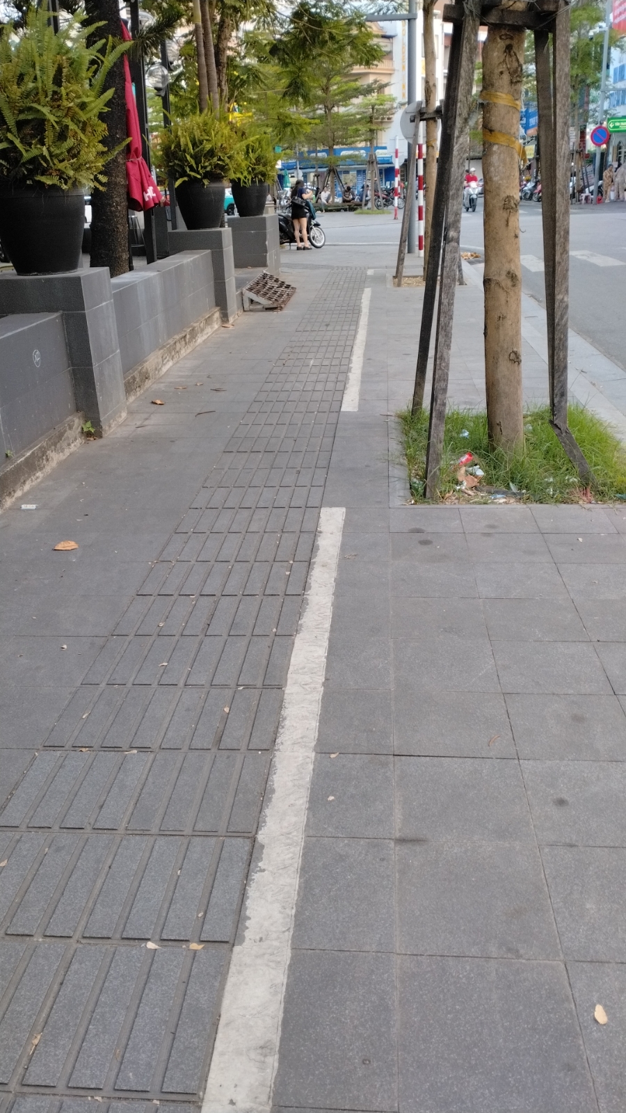 Đoạn đường này gần Cổng Bệnh viện Trung ương Huế; do đó, nhu cầu tham gia giao thông cũng như nhu cầu đi bộ trên vỉa hè của người dân tăng cao.
