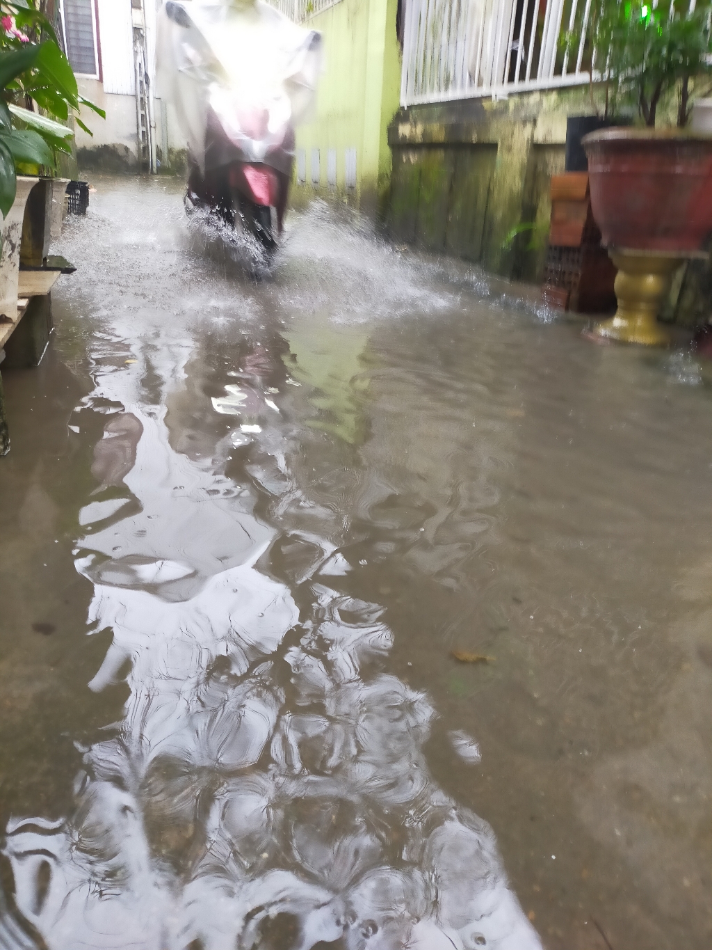 Đường bê tông giờ thành sông, các hộ trong ngõ phải sống chung, chỉ 1 cơn mưa nước đã ứ đọng. Nhờ các cấp xem xét.