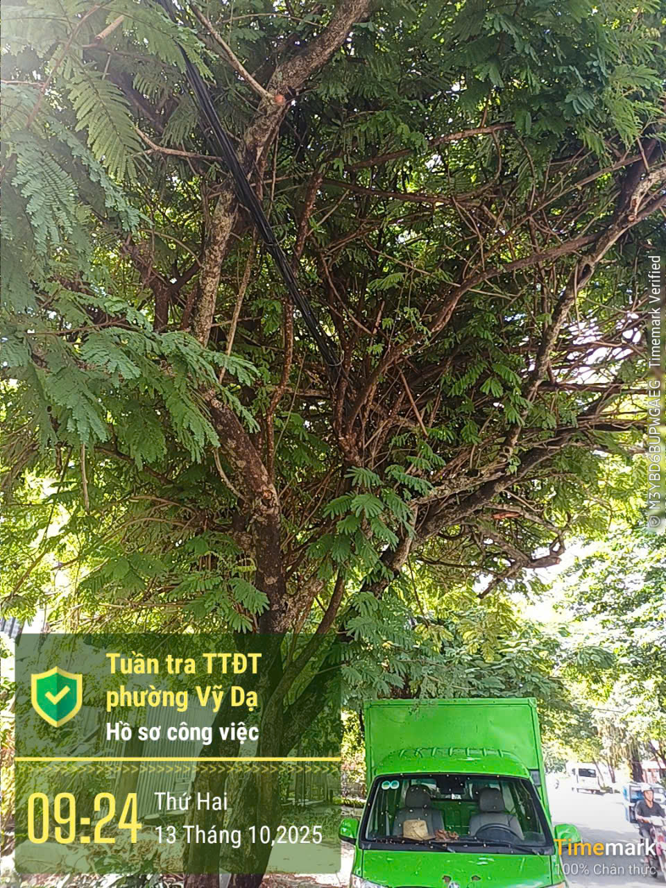 UBND phường đã phối hợp với Trung tâm Công viên cây xanh tiến hành cắt tỉa và tiến hành bó dây điện lại.