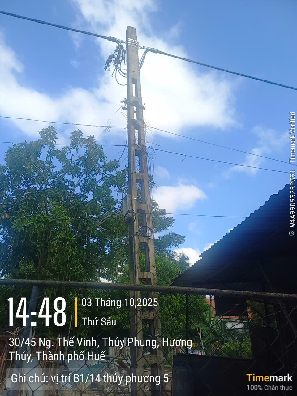Đội Quản lý điện Hương Thủy đã kiểm tra, hiện cột điện theo phản ảnh vẫn đảm bảo cấp điện (Đính kèm hình ảnh).