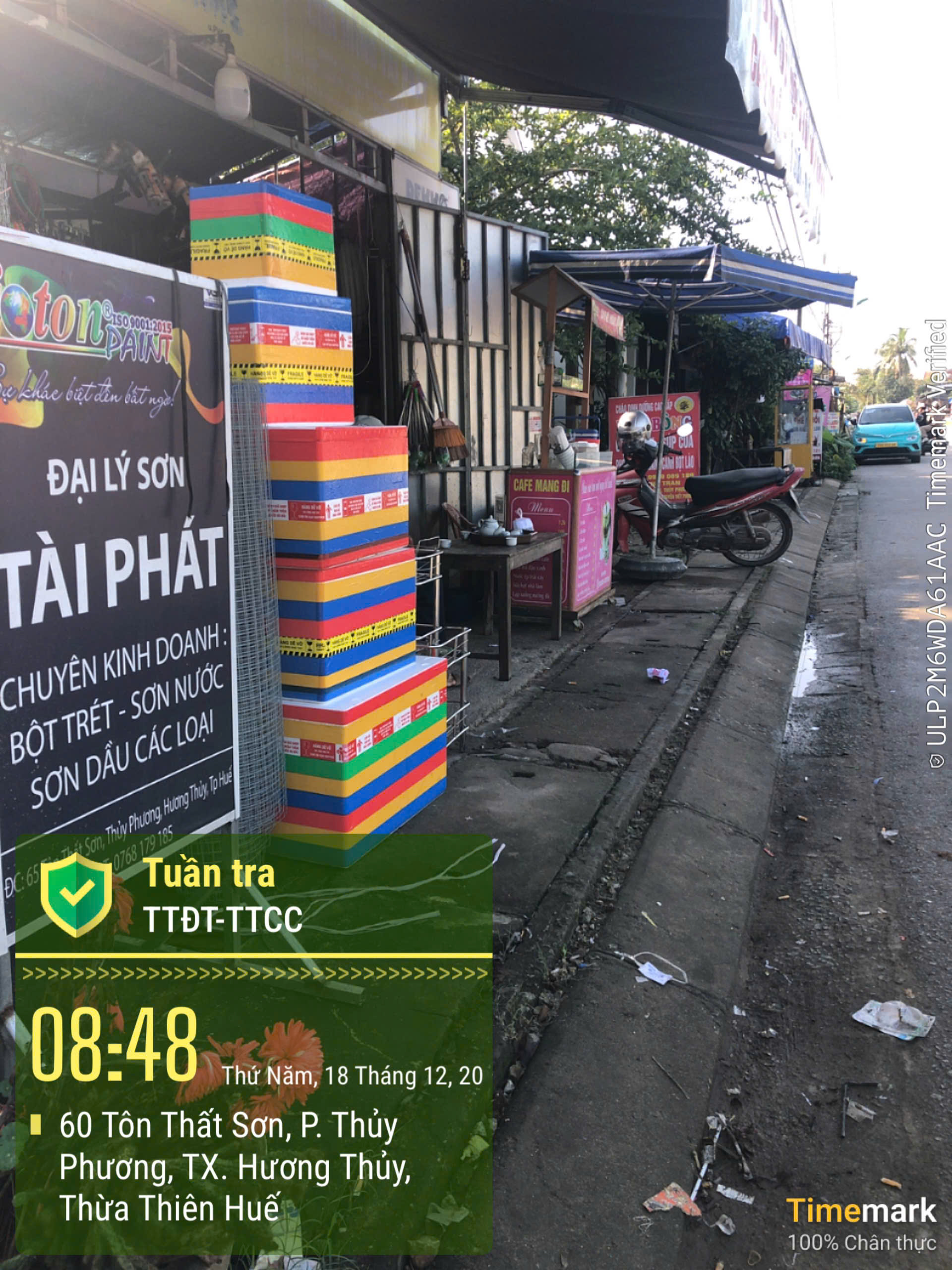 Tại khu vực đường Tôn Thất Sơn, phường Thanh Thủy hiện chưa có bố trí phần vỉa hè, chỉ có phần mương thoát nước. Công an phường đã làm việc cho tiến hành cam đoan cam kết đối với hộ kinh doanh Tài Phát là bà N.T.L, sinh nam: 1980, trú tại: Tổ 9, phường Thanh Thủy không kinh doanh lấn chiếm lòng lề đường, hoàn trả vị trí để các phương tiện xe mô tô đỗ xe.