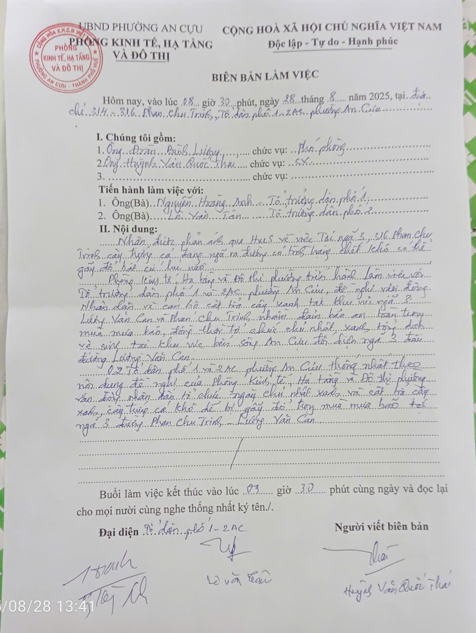 UBND phường An Cựu đã chỉ đạo Phòng Kinh tế, Hạ tầng và Đô thị phường đã về làm việc và đề nghị 2 Tổ dân phố 01, 02 An Cựu phát động nhân dân xử lý cây trứng cá trong dịp thực hiện phong trào "Chủ nhật xanh". (Có Biên bản kèm theo)
