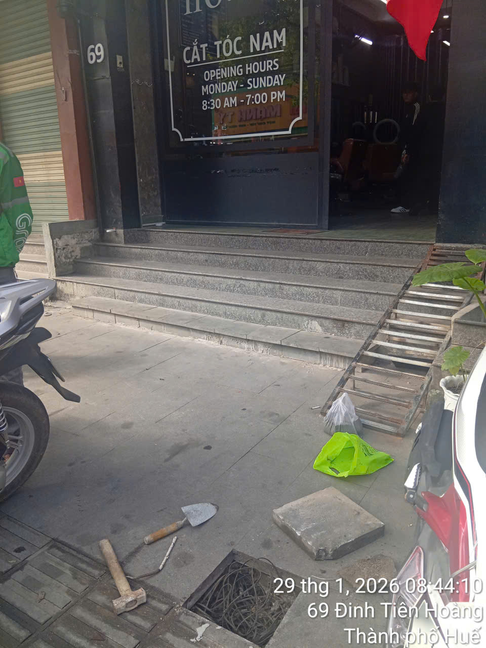 Tầm ngày 10/12/2025 tại khu vực địa chỉ 69-71 Đinh Tiên Hoàng , Phường Phú Xuân, Thành phố Huế, có anh em mặc áo xanh của đơn vị môi trường đang sửa chữa khu vực vỉa hè để rồi viên gạch lát vỉa hè bị sụp lún, bên cạnh có đống đất cát được cào lên rồi đổ cạnh gốc cây ở gần đó gây mất mỹ quan và người đi bộ dễ vấp ngã. Mong quý cơ quan kịp thời xử lý. Cũng như nhờ quý cơ quan nhắc nhở anh em nào làm việc thì nhớ mà khắc phục, chơ đến bây giờ vẫn không được vá lấp lại. Xin chân thành cám ơn.