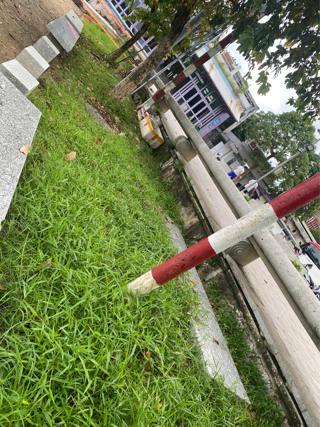 Các ghế tấm đá tại công viên 3/2 đang bị nghiêng ngả.