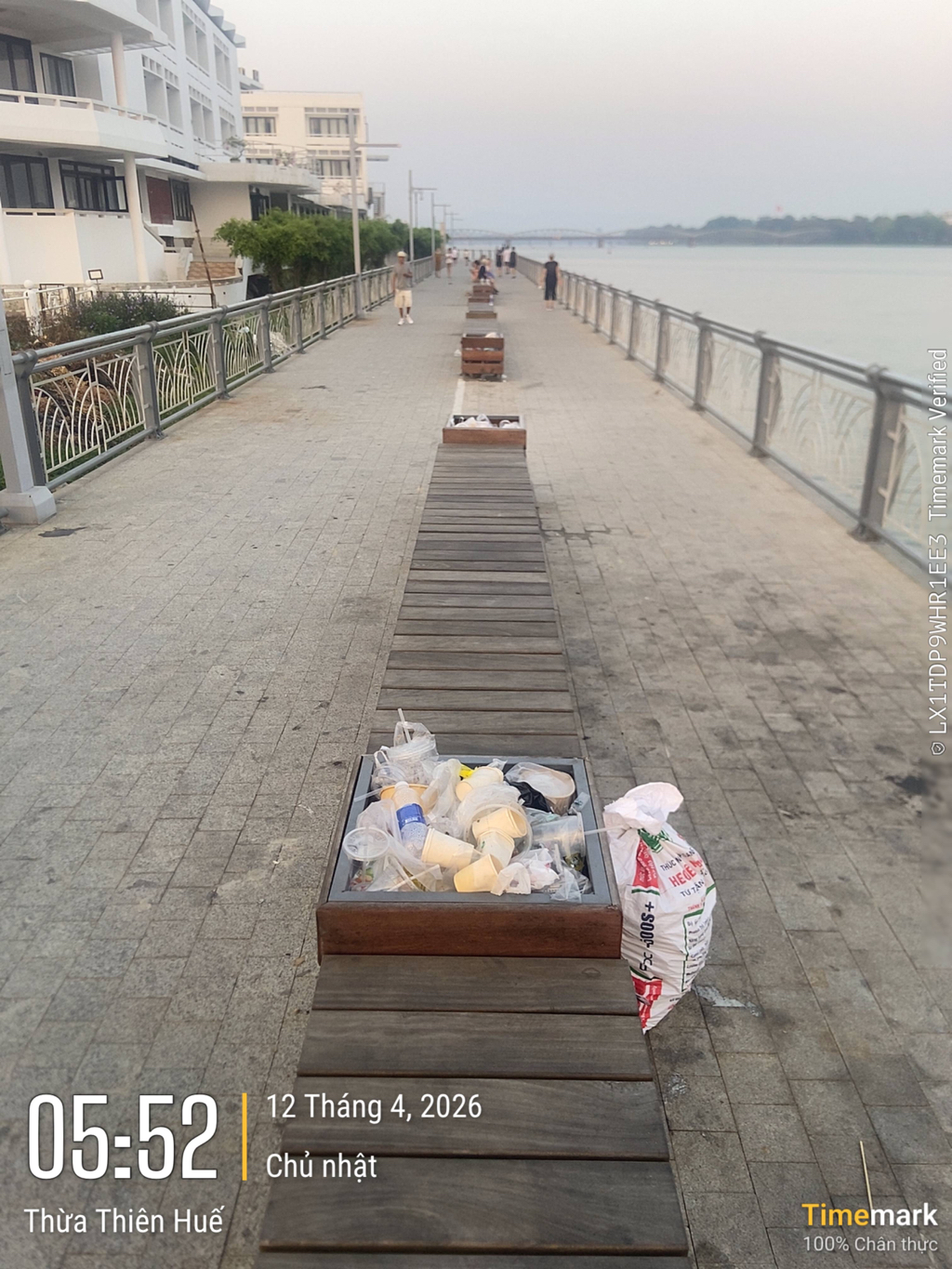 Hiện tại, dự án chưa bàn giao cho Trung tâm để đưa vào sử dụng, nên chưa bố trí thùng rác. Tuy nhiên, Trung tâm đã liên hệ với đơn vị thi công để dọn dẹp, vệ sinh sạch sẽ tuyến đường đi bộ Đập Đá - bến Tòa Khâm (đính kèm hình ảnh).