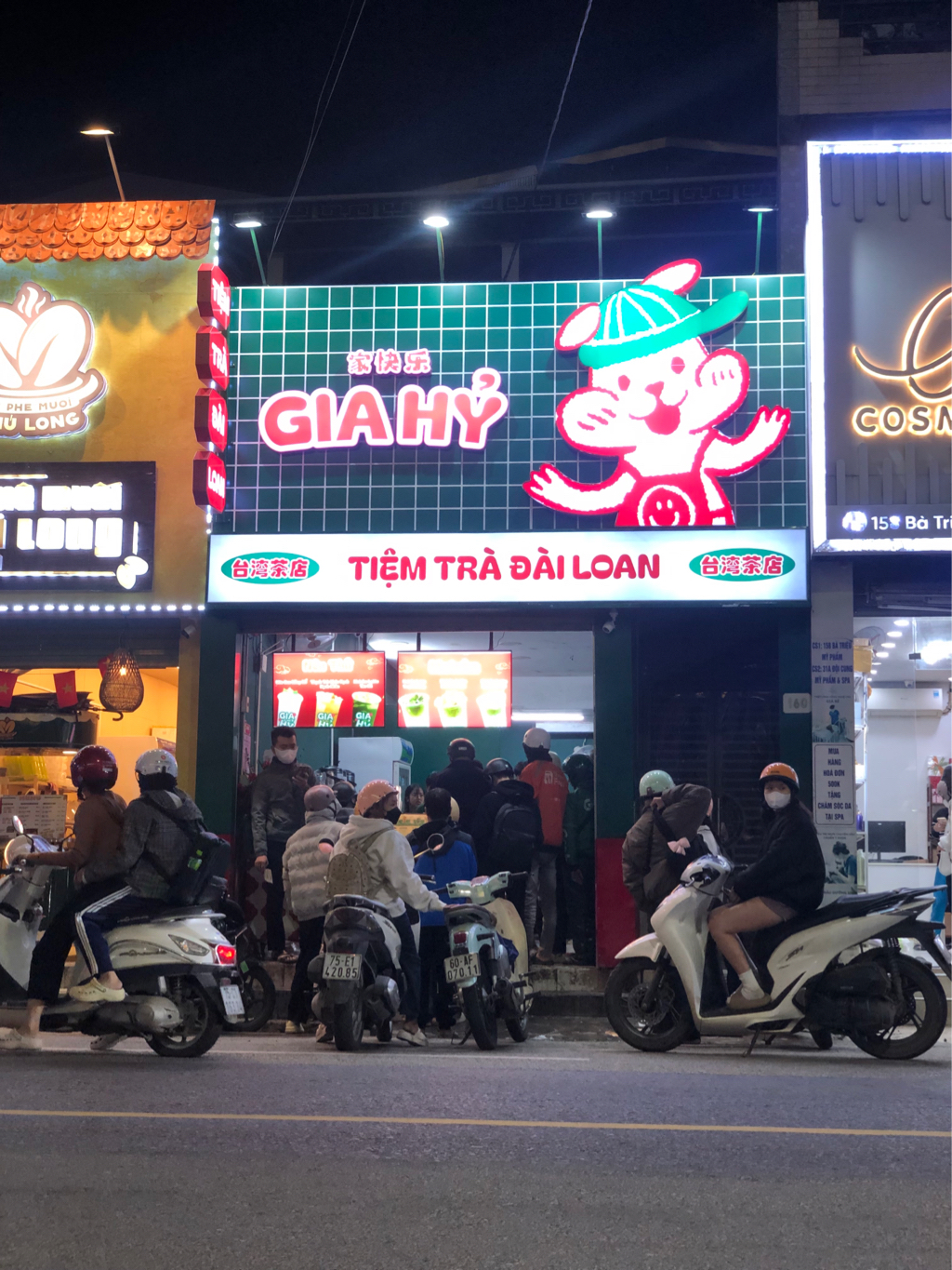 Tiệm trà Đài Loan Gia Hỷ tại 160 Bà Triệu, lấn chiếm lòng lề đường, làm ảnh hưởng đến giao thông. Ảnh ghi lại lúc: 19h05, thứ 5 ngày 27/11/2025.