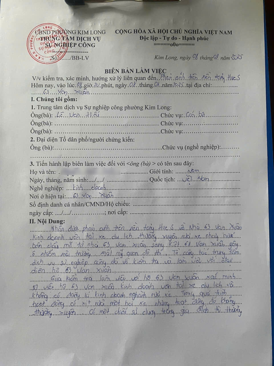 Vấn đề quý Ông/Bà phản ánh, UBND phường Kim Long xin thông báo kết quả như sau: