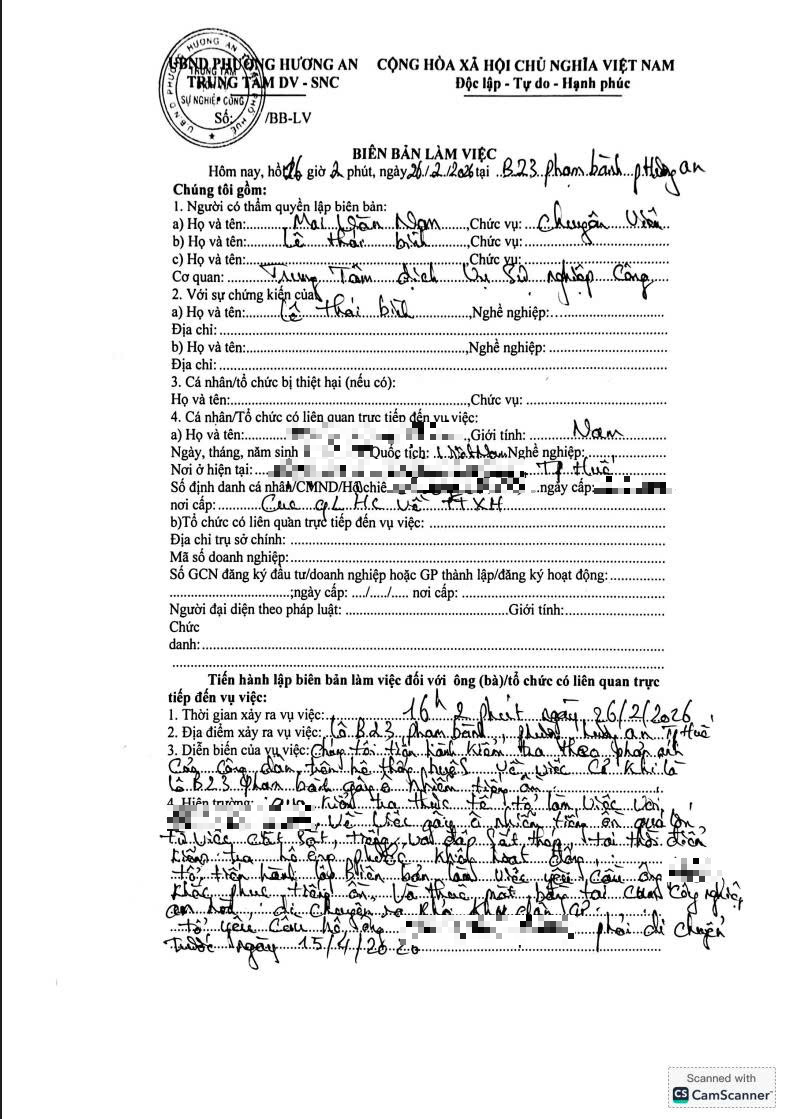 Qua nội dung phản ánh, được biết ngày 26/02/2026 Trung tâm dịch vụ sự nghiệp công phường đã phân công cán bộ kiểm tra khảo sát thực tế tại vị trí nói trên.