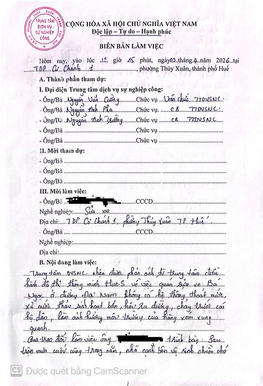 Vấn đề quý Ông/Bà phản ánh, UBND phường Thuỷ Xuân đã chỉ đạo Trung tâm Dịch vụ sự nghiệp công phường Thuỷ Xuân (Trung tâm) kiểm tra và xin thông báo kết quả như sau:
