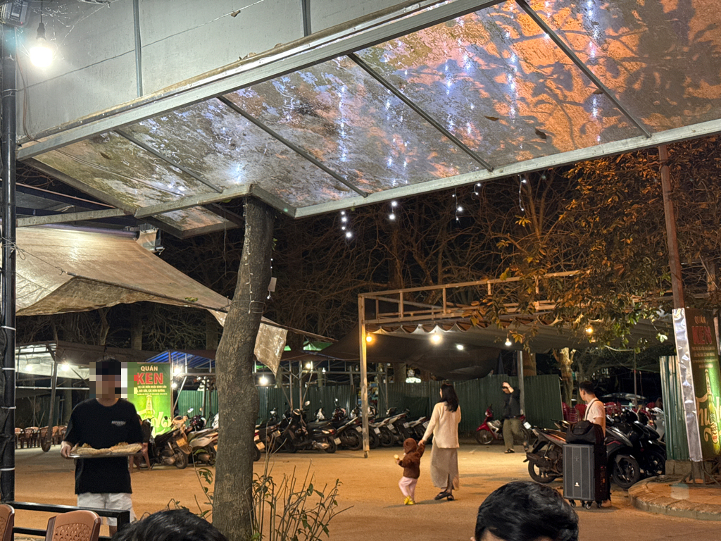 Người dân tự ý thi công mái che để phục vụ quán nhậu tại đó trong khi vị trí đó là bãi đậu xe.