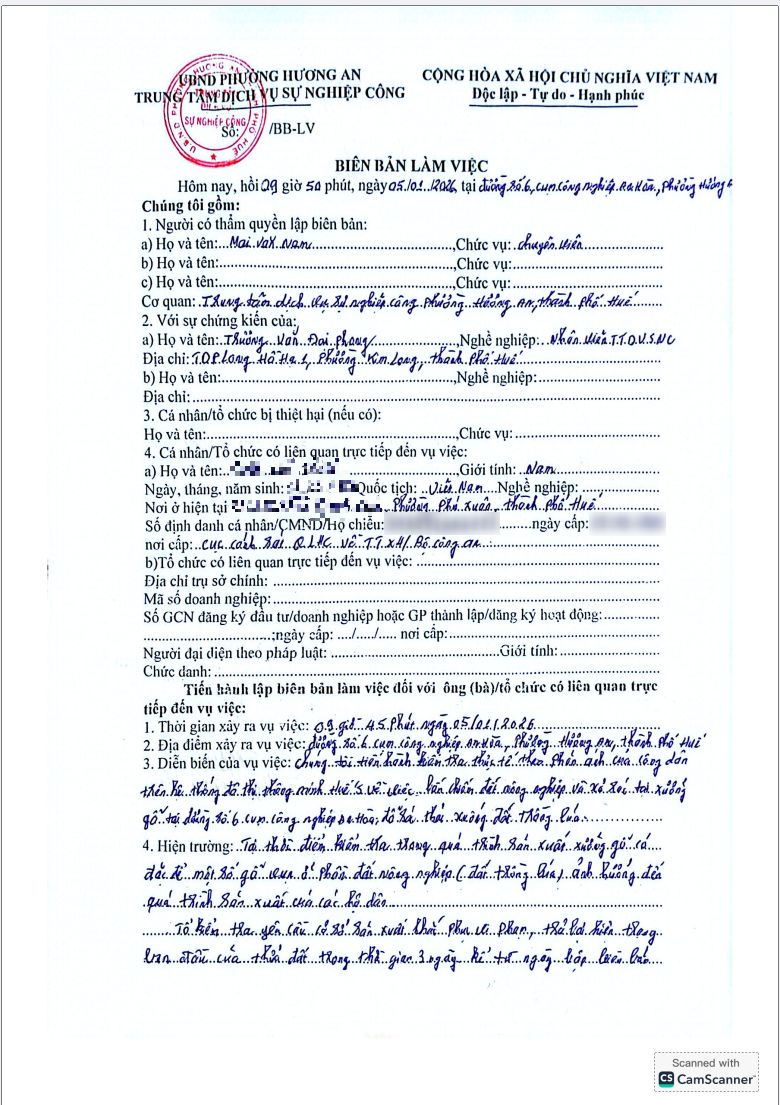 Vấn đề quý Ông/Bà phản ánh, UBND phường Hương An đã chỉ đạo Trung tâm Dịch vụ sự nghiệp công phường kiểm tra và xin thông báo kết quả như sau: