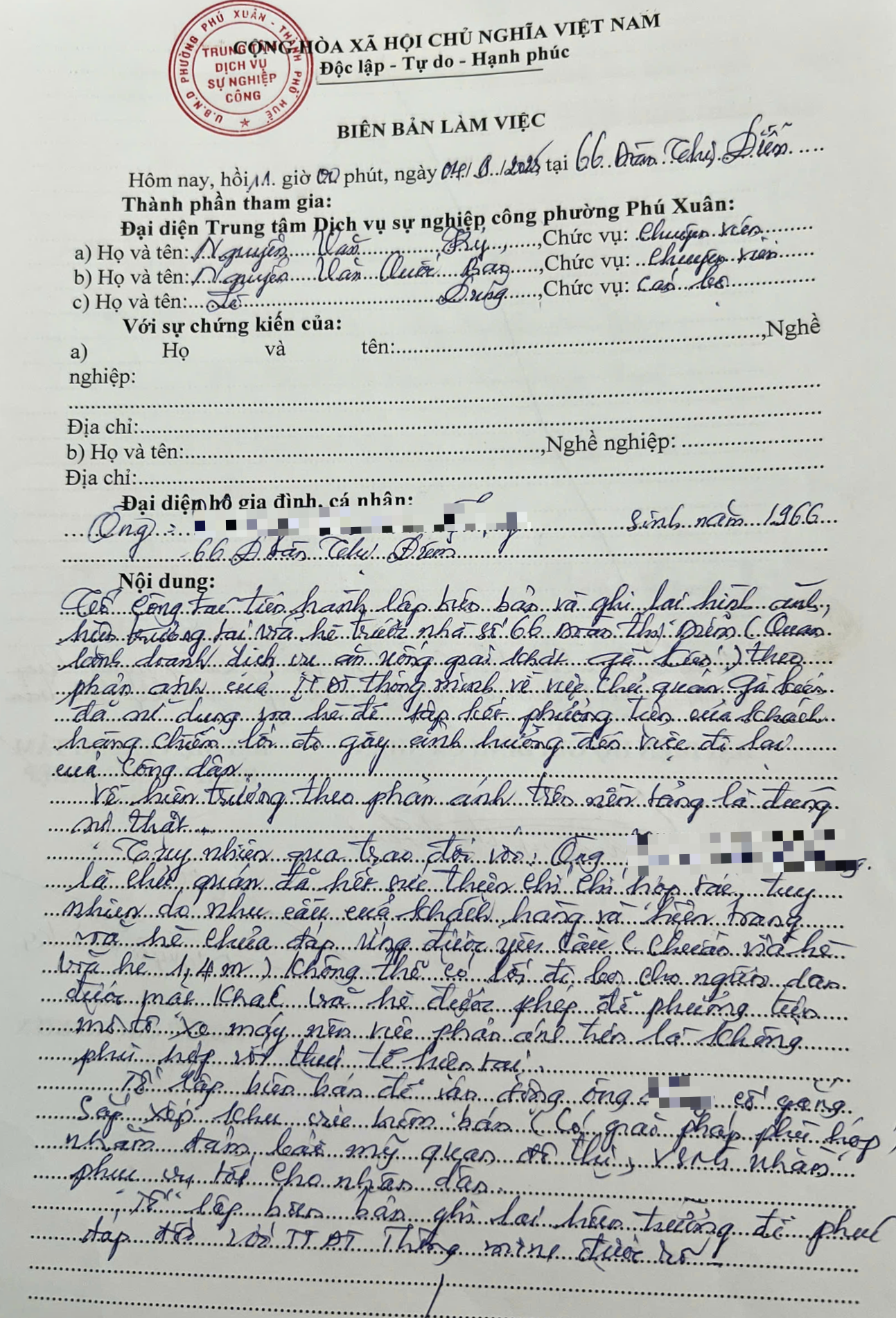 Vấn đề quý Ông/Bà phản ánh, UBND phường Phú Xuân đã chỉ đạo Trung tâm Dịch vụ sự nghiệp công phường Phú Xuân kiểm tra và xin thông báo kết quả như sau: