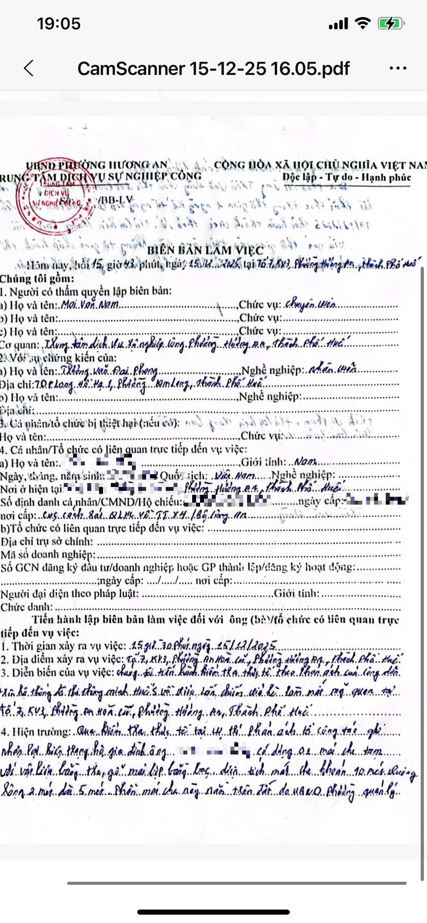 Vấn đề quý Ông/Bà phản ánh, UBND phường Hương An đã chỉ đạo Trung tâm dịch vụ sự nghiệp công phường kiểm tra và xin thông báo kết quả như sau: