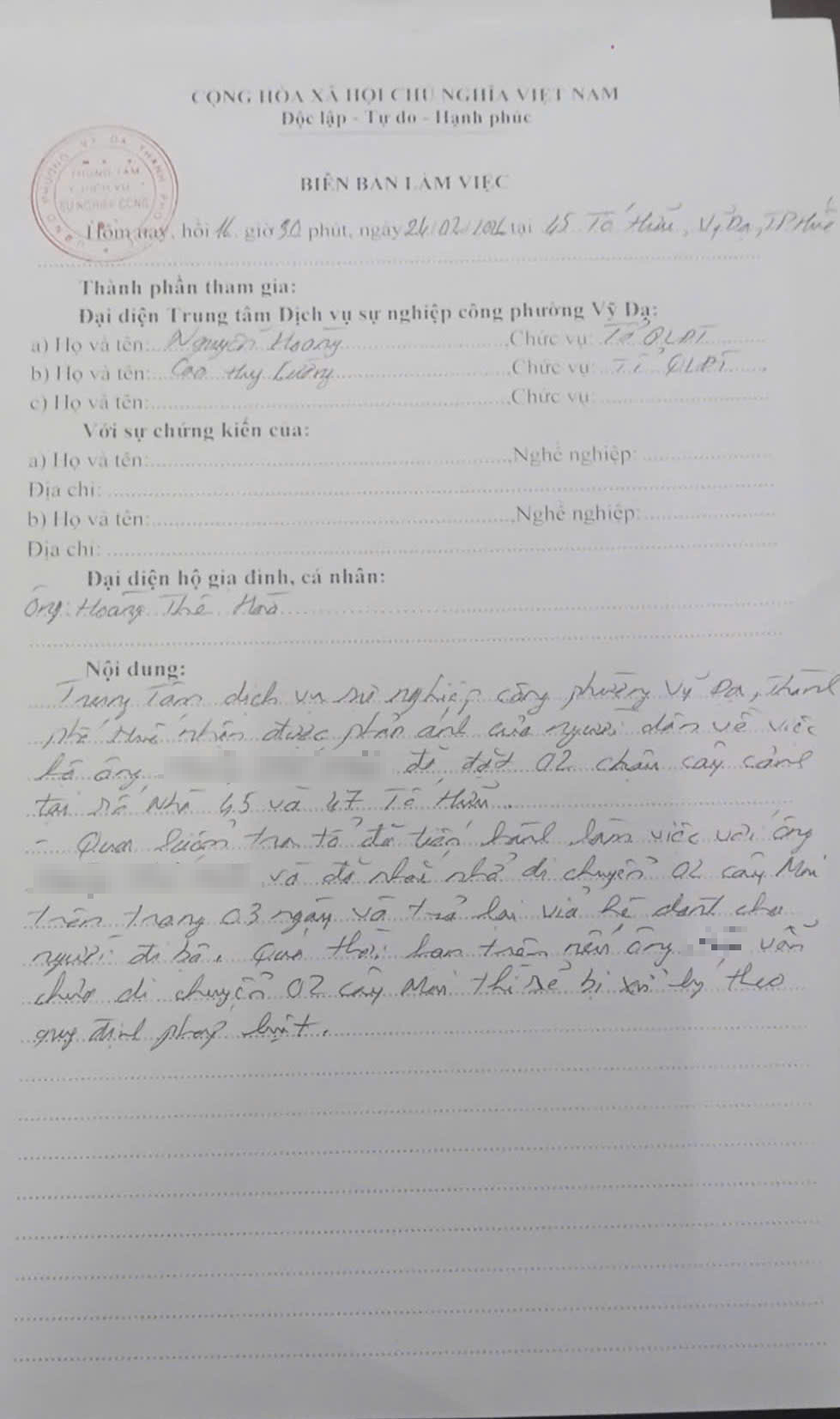 Sau khi tiếp nhận phản ánh, UBND phường Vỹ Dạ đã chỉ đạo Trung tâm phối hợp với Tổ CSTT phường tiến hành làm việc và yêu cầu di dời cây đến vị trí khác theo đúng quy định.