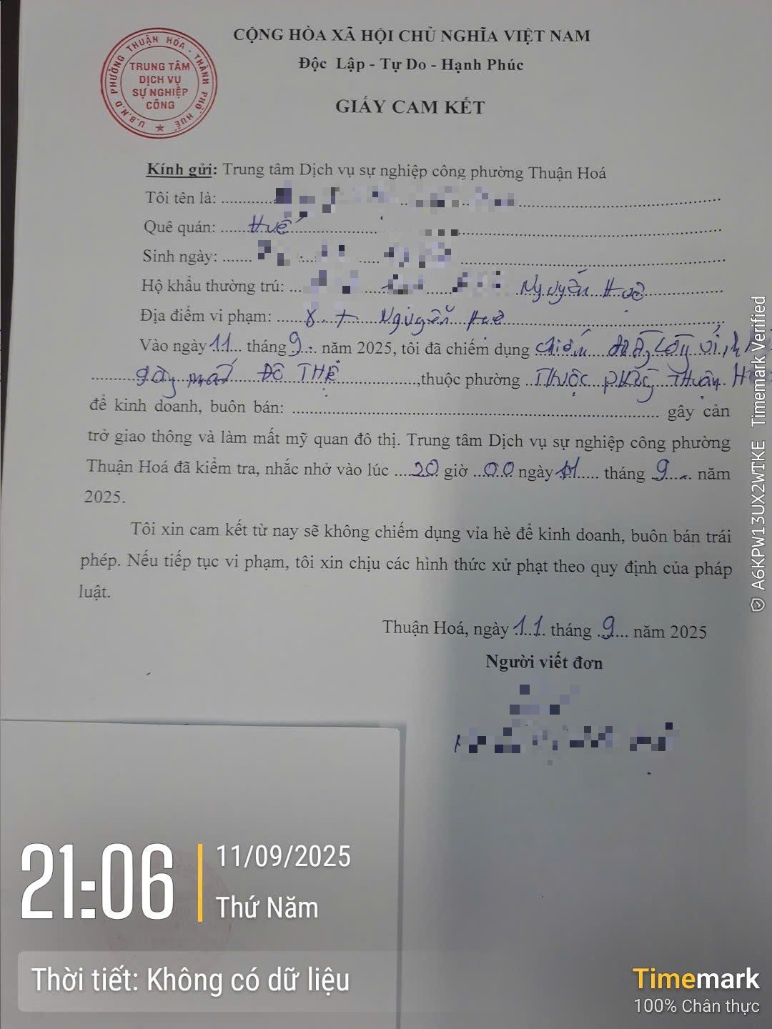 Nhận được thông tin phản ánh, Trung tâm Dịch vụ sự nghiệp công phường Thuận Hoá đã chỉ đạo bộ phận trật tự Đô thị - Trật tự - Xây dựng tiến hành kiểm tra thực tế tại điểm phản ánh tại 87 Nguyễn Huệ. Trung tâm đã làm bản cam kết đối với hộ buôn bán không được buôn bán lấn chiếm vỉa hè.
