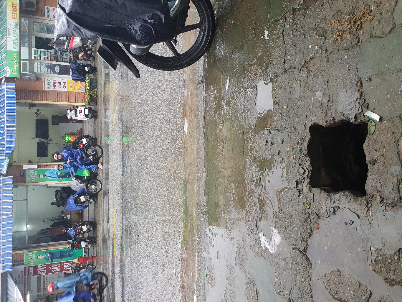 Người dân đi bộ sụp hố suýt gãy chân tại 206 Nguyễn Sinh Cung, phường Vỹ...