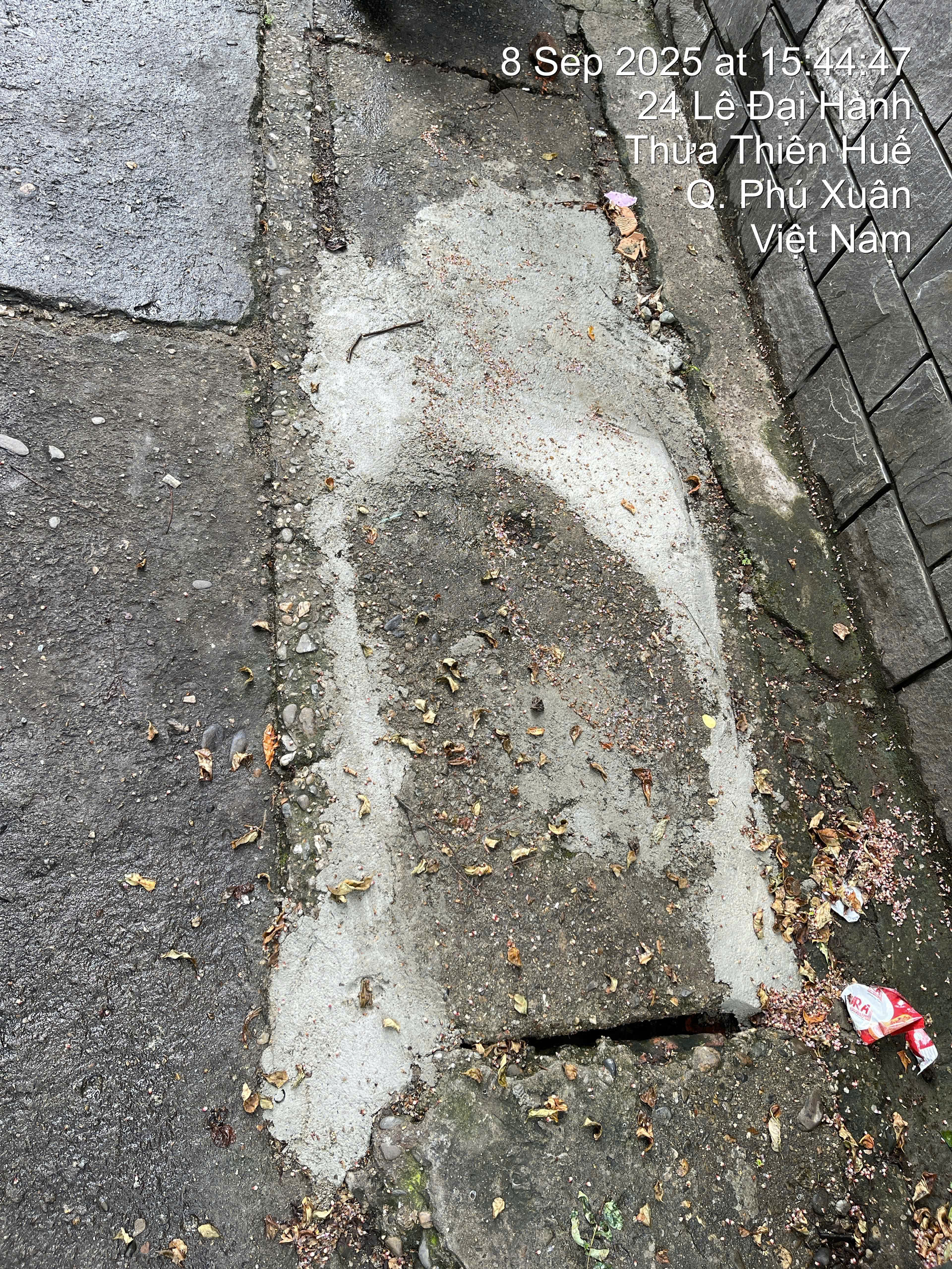 Nắp cống bên hông nhà 24 Lê Đại Hành (kiệt 35 Hoàng Diệu) bị vỡ to gây nguy hiểm. Đề nghị xử lý gấp.