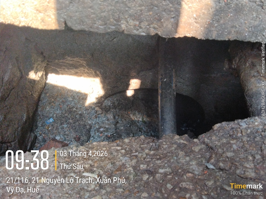 Tại số nhà 14 đường Nguyễn Lộ Trạch hố ga của môi trường đô thị bị bể nắp...
