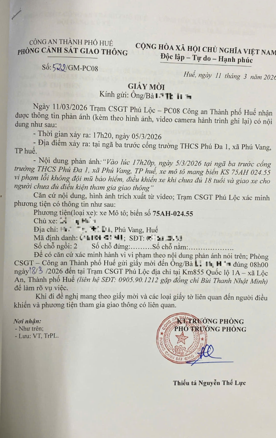 Vấn đề quý Ông/Bà phản ánh, Công an thành phố Huế đã chỉ đạo Phòng Cảnh sát giao thông kiểm tra và xin thông báo kết quả như sau:
