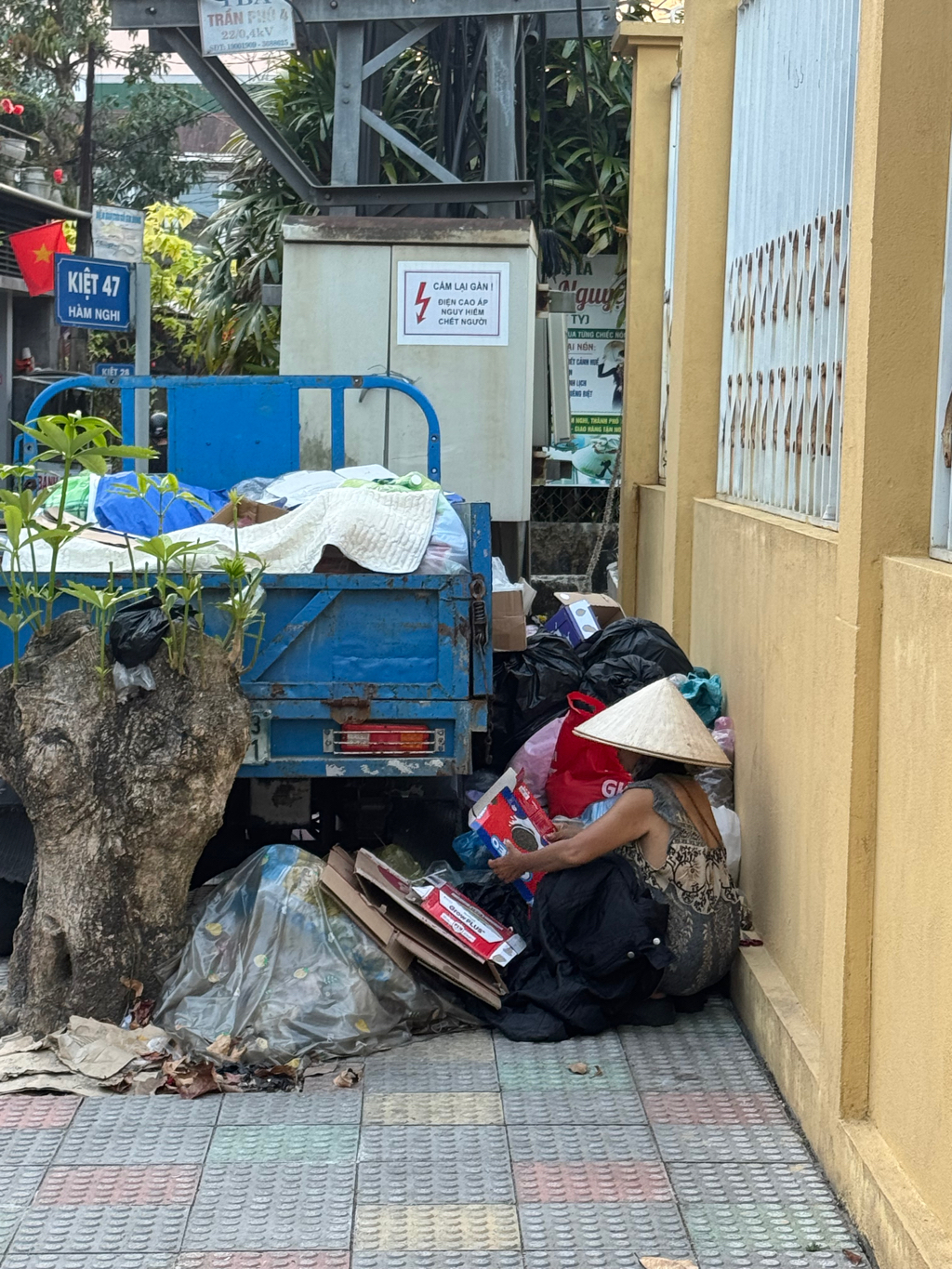 Vào lúc 17h04 ngày 23 tháng 2 năm 2026 tại 47 Hàm Nghi, phường Thuận Hoá người vô gia cư tiếp tục đem rác đến chất đống tại khu vực trạm điện tiềm ẩn nguy cơ cháy nổ và mất vệ sinh.
