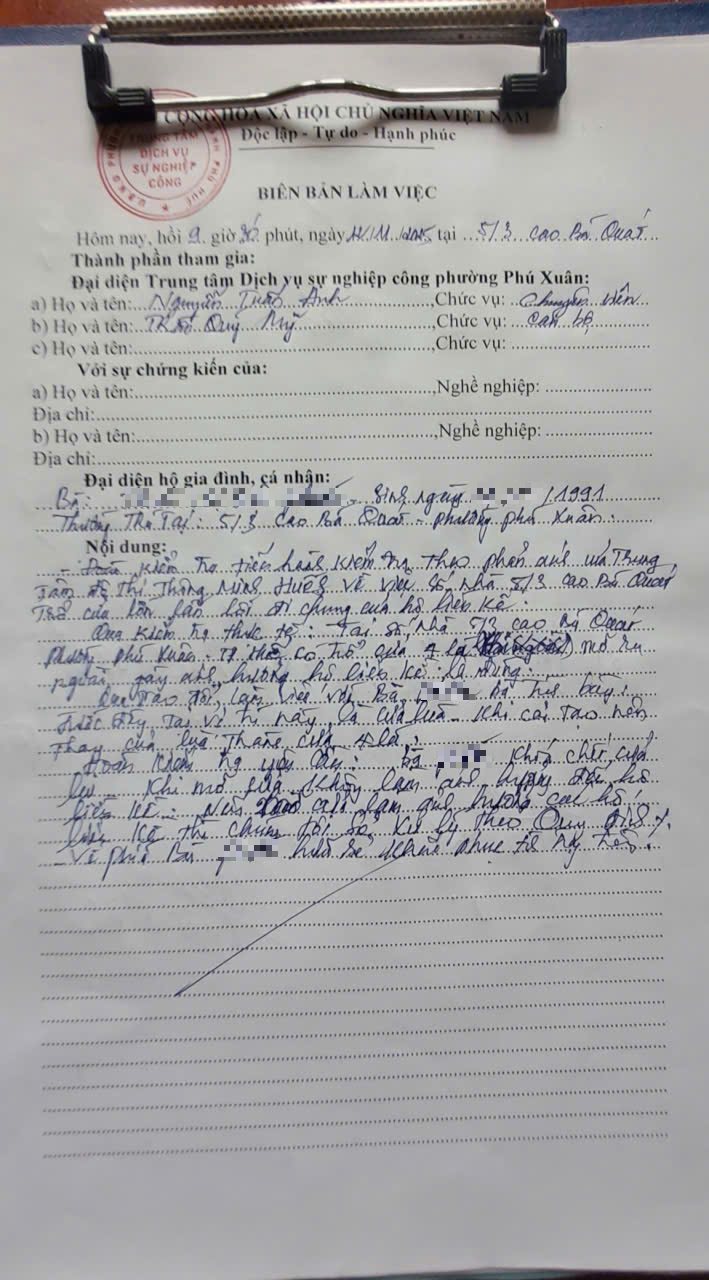 Vấn đề quý Ông/Bà phản ánh, UBND phường Phú Xuân đã chỉ đạo Trung tâm Dịch vụ sự nghiệp công phường Phú Xuân kiểm tra và xin thông báo kết quả như sau: