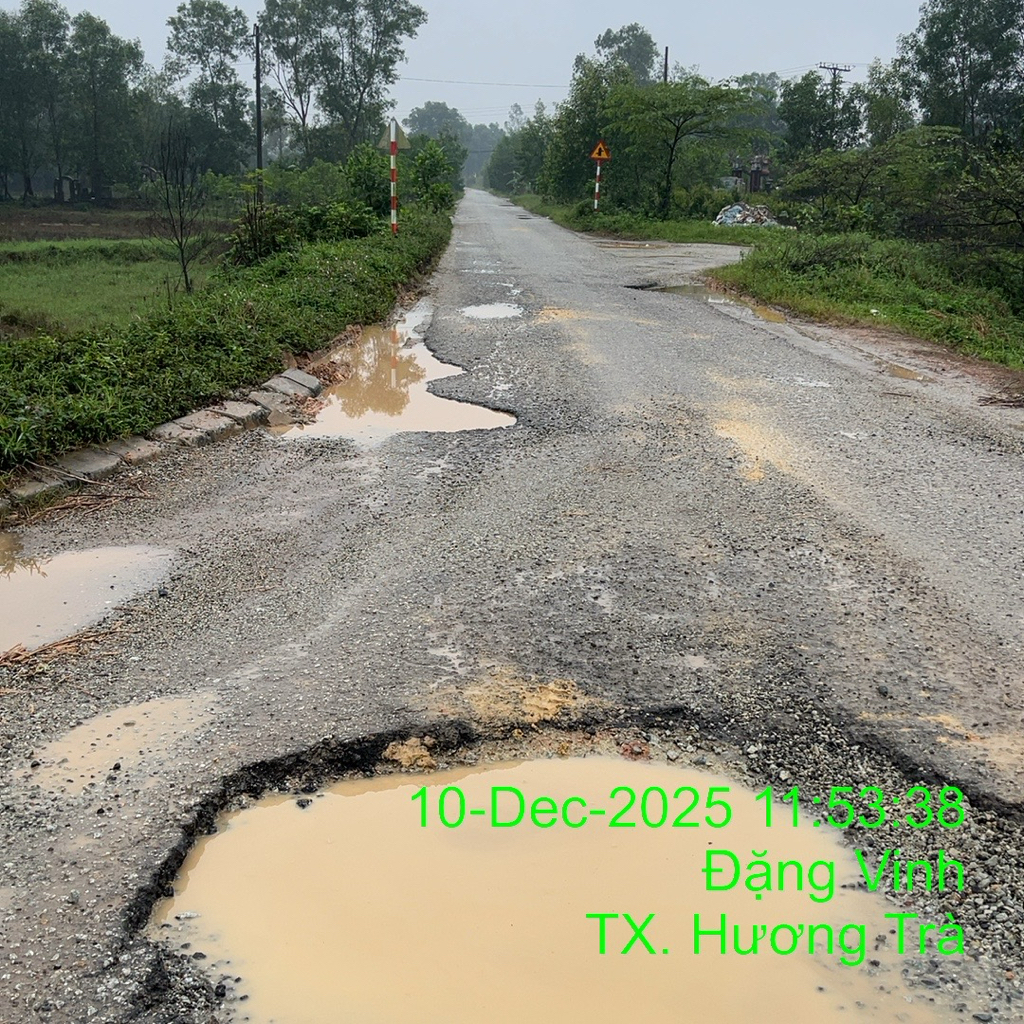 Kiến nghị UBND phường Hương Trà quan tâm vá lại những ổ voi giúp người dân và công nhân đi lại được an toàn. Tại vị trí giao nhau giữa tuyến đường Đặng Vinh và Hương Điền thuộc địa bàn tổ dân phố 1, phường Hương Trà, thành phố Huế.