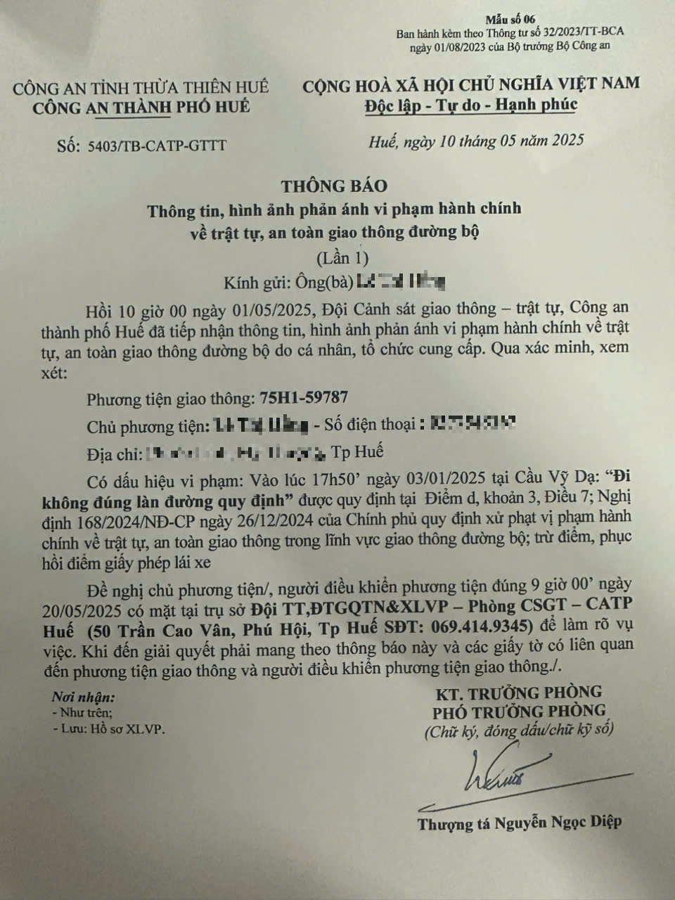 Vấn đề quý Ông/Bà phản ánh, Phòng Cảnh sát giao thông – Công an thành phố Huế đã kiểm tra và xin thông báo kết quả như sau: