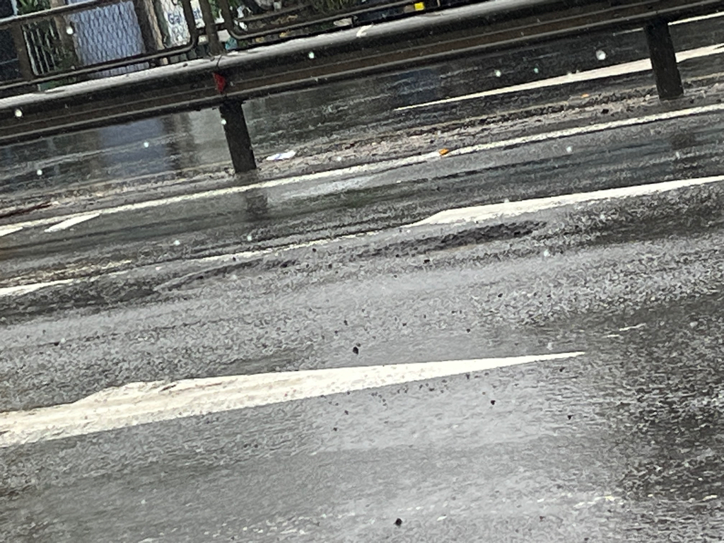 Đoạn đường QL1A đi qua chợ Cầu Hai, gần phía cột đèn tín hiệu giao thông, có 2 ổ gà lớn. Khi các xe chạy qua làm đất đá từ các ổ gà bắn tung toé lên đường, nguy hiểm cho người đi lại và các hộ dân ở ven đường.