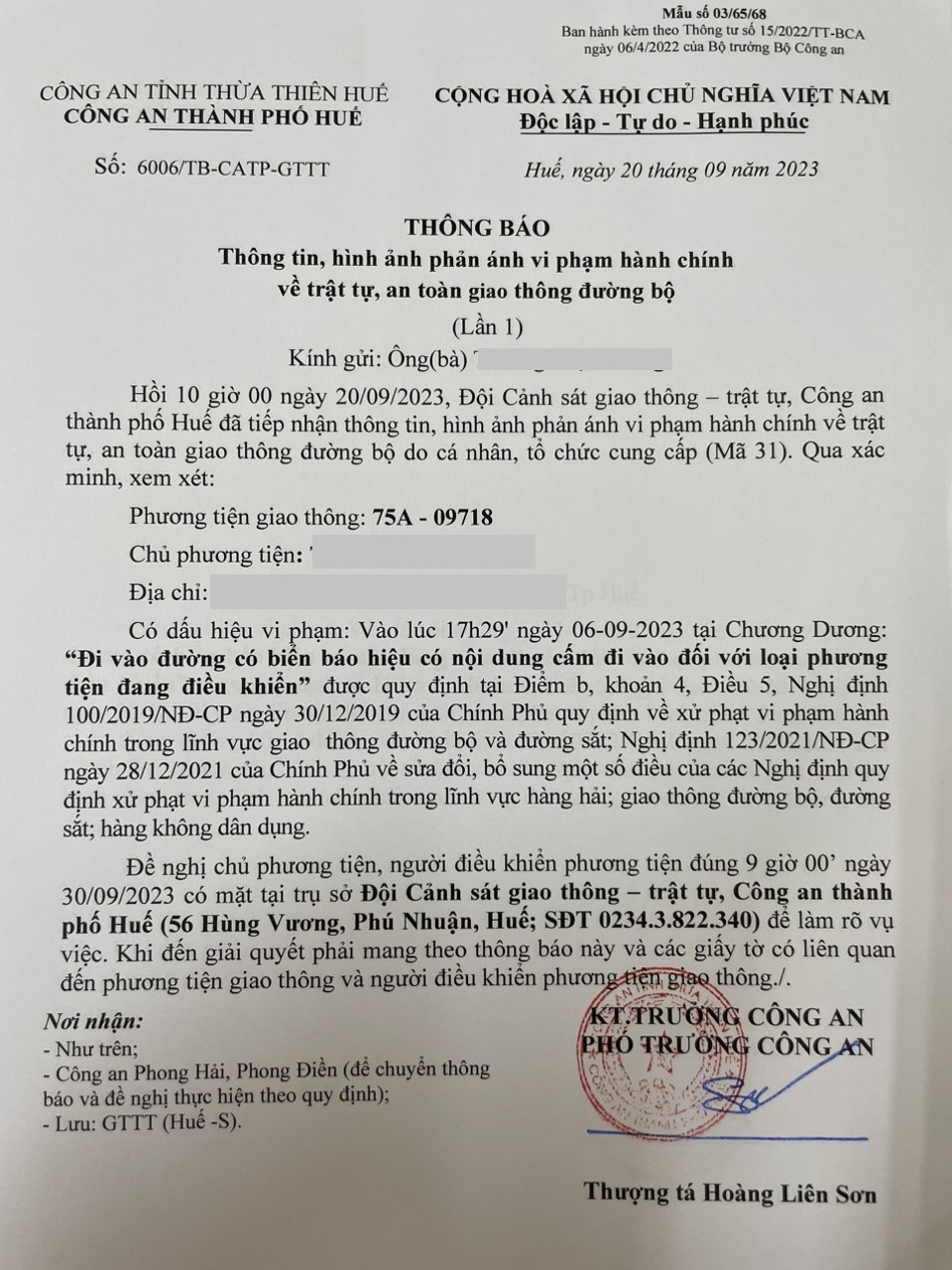 Vấn đề quý Ông/Bà phản ánh, Công an tỉnh đã chỉ đạo Công an thành phố Huế kiểm tra và xin thông báo kết quả như sau:
