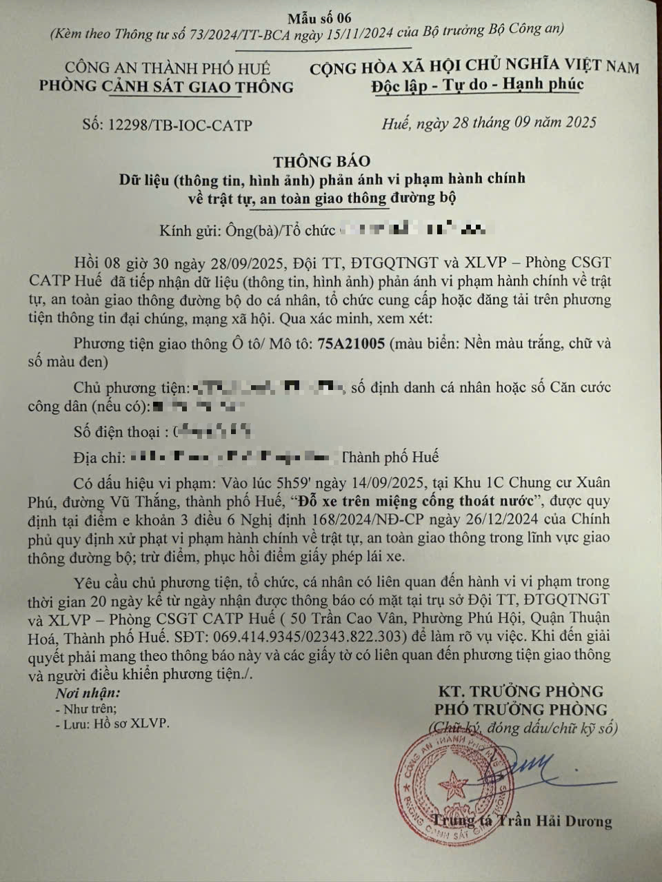 Vấn đề quý Ông/Bà phản ánh, Công an thành phố Huế đã chỉ đạo Phòng Cảnh sát giao thông kiểm tra và xin thông báo kết quả như sau: