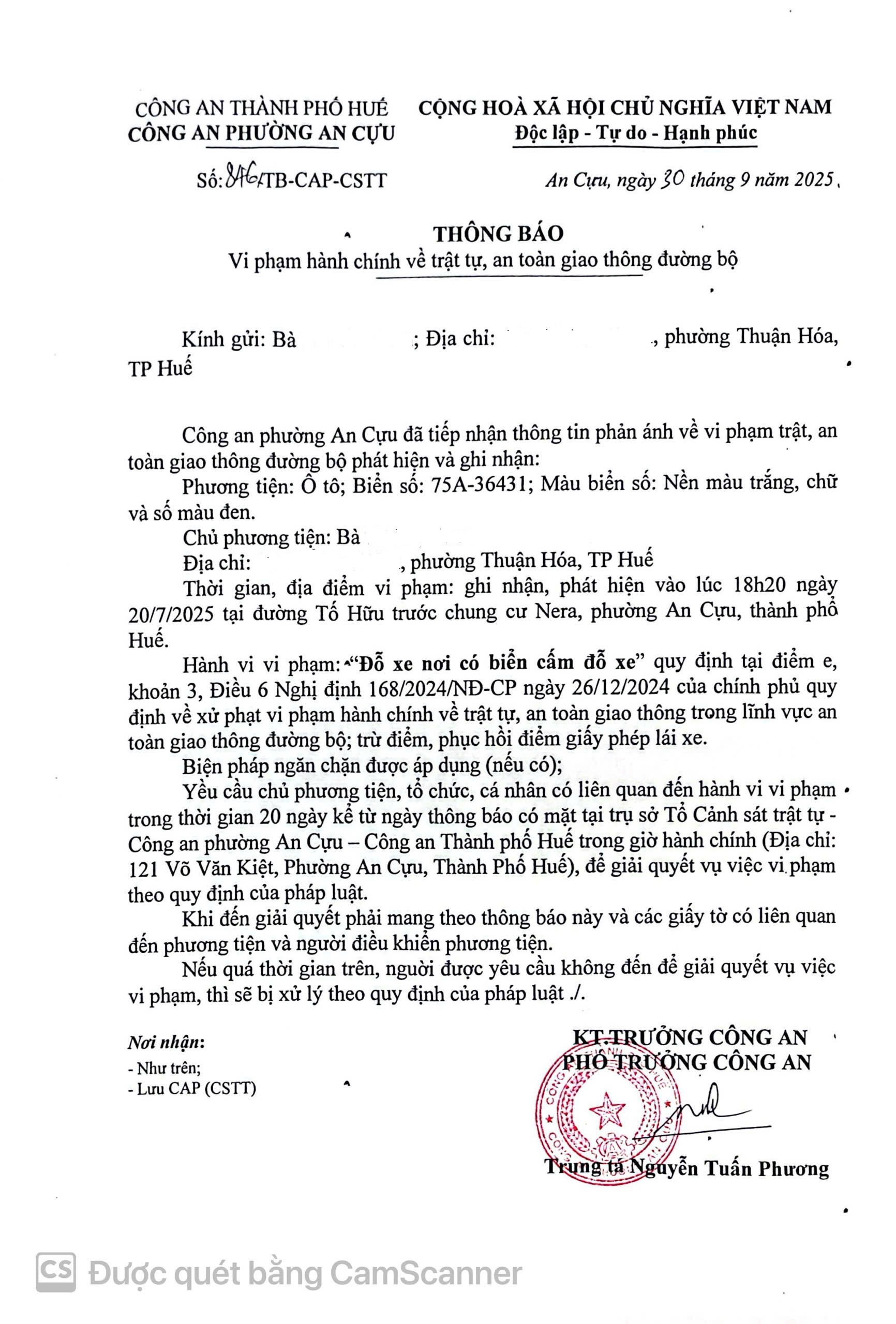 Vấn đề quý Ông/Bà phản ánh, Công an thành phố Huế đã chỉ đạo Công an phường Vỹ Dạ kiểm tra và xin thông báo kết quả như sau: