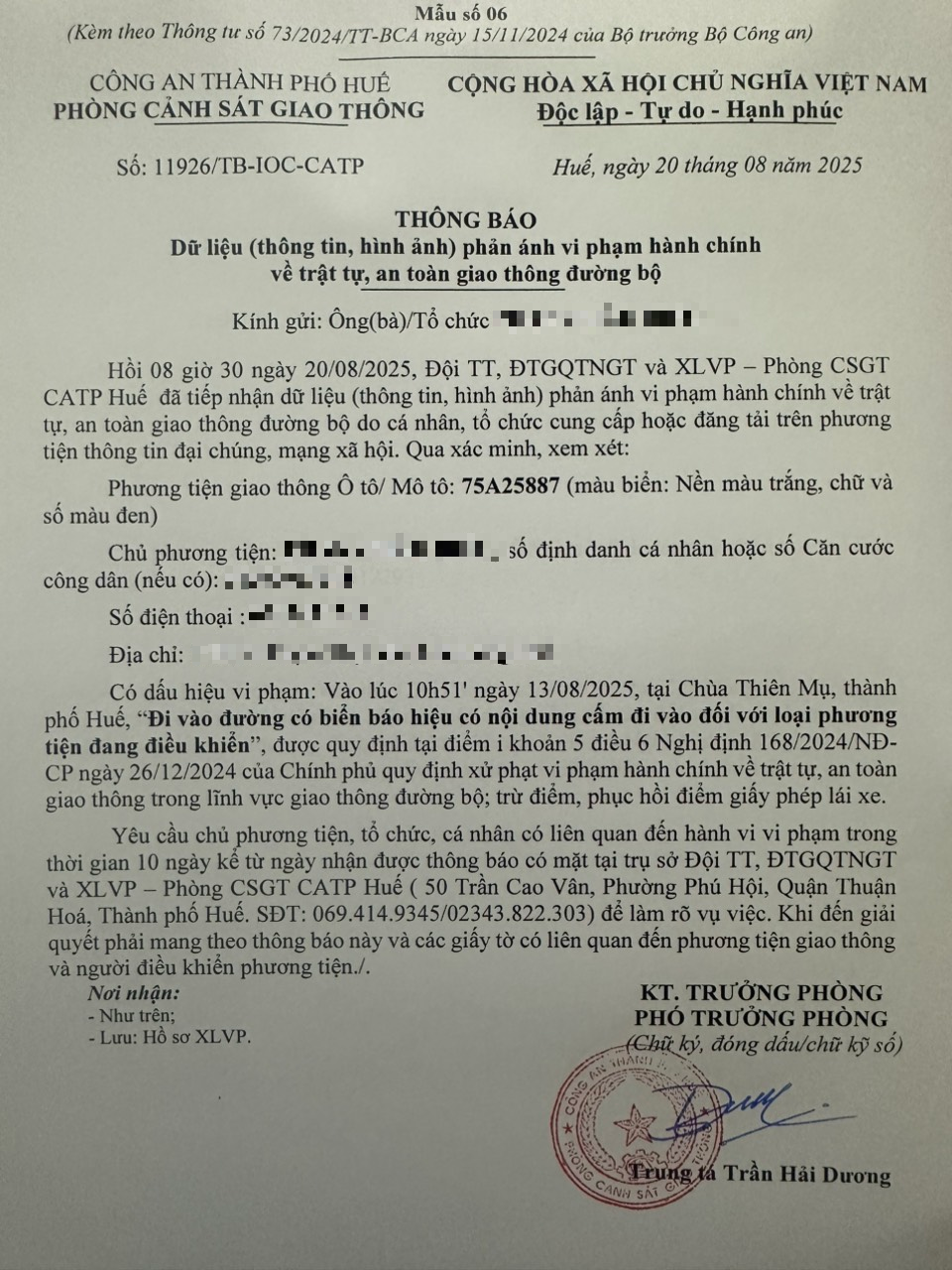 Vấn đề quý Ông/Bà phản ánh, Phòng Cảnh sát giao thông – Công an thành phố Huế đã kiểm tra và xin thông báo kết quả như sau: