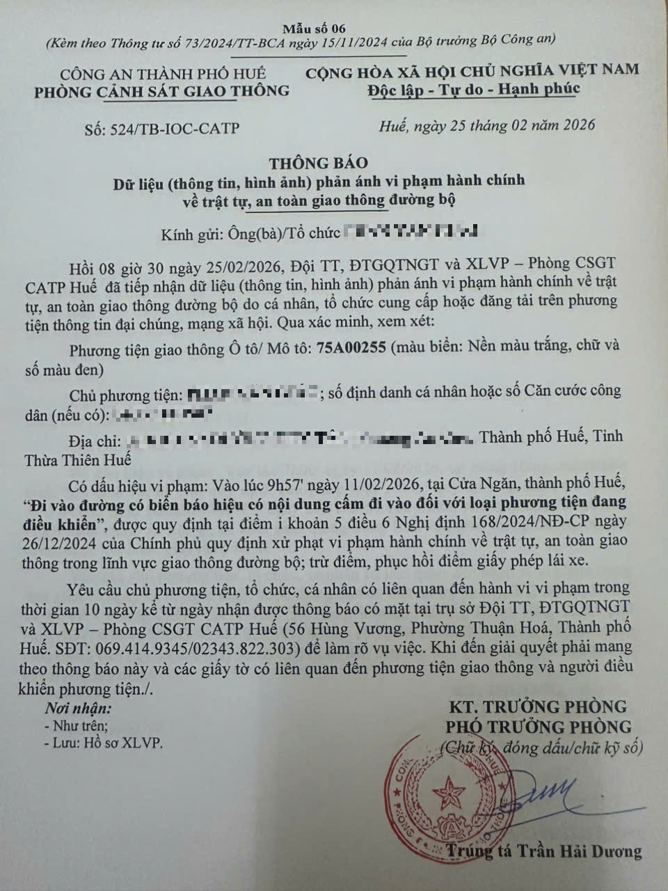 Vấn đề quý Ông/Bà phản ánh, Phòng Cảnh sát giao thông – Công an thành phố Huế đã kiểm tra và xin thông báo kết quả như sau: