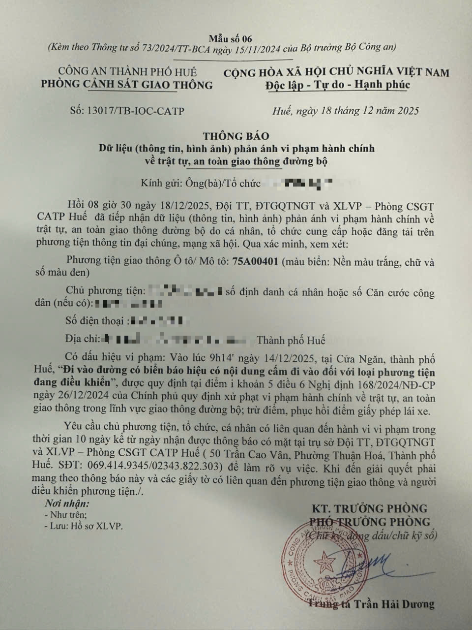 Vấn đề quý Ông/Bà phản ánh, Phòng Cảnh sát giao thông – Công an thành phố Huế đã kiểm tra và xin thông báo kết quả như sau: