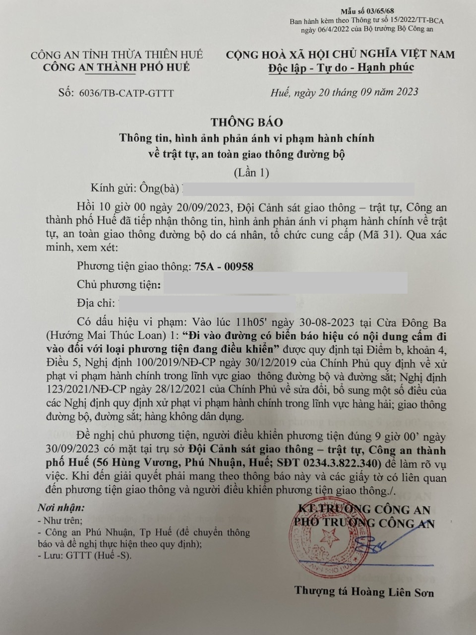 Vấn đề quý Ông/Bà phản ánh, Công an tỉnh đã chỉ đạo Công an thành phố Huế xin thông báo kết quả xử lý như sau: