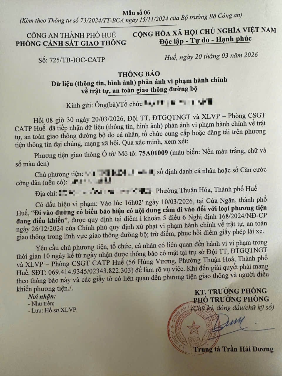 Vấn đề quý Ông/Bà phản ánh, Công an thành phố Huế đã chỉ đạo Phòng Cảnh sát giao thông kiểm tra và trả lời như sau: