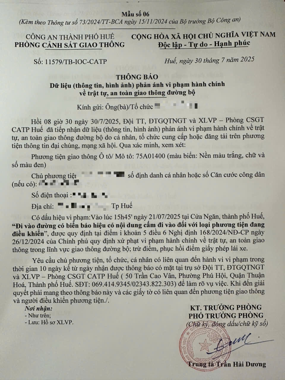 Vấn đề quý Ông/Bà phản ánh, Phòng Cảnh sát giao thông – Công an thành phố Huế đã kiểm tra và xin thông báo kết quả như sau: