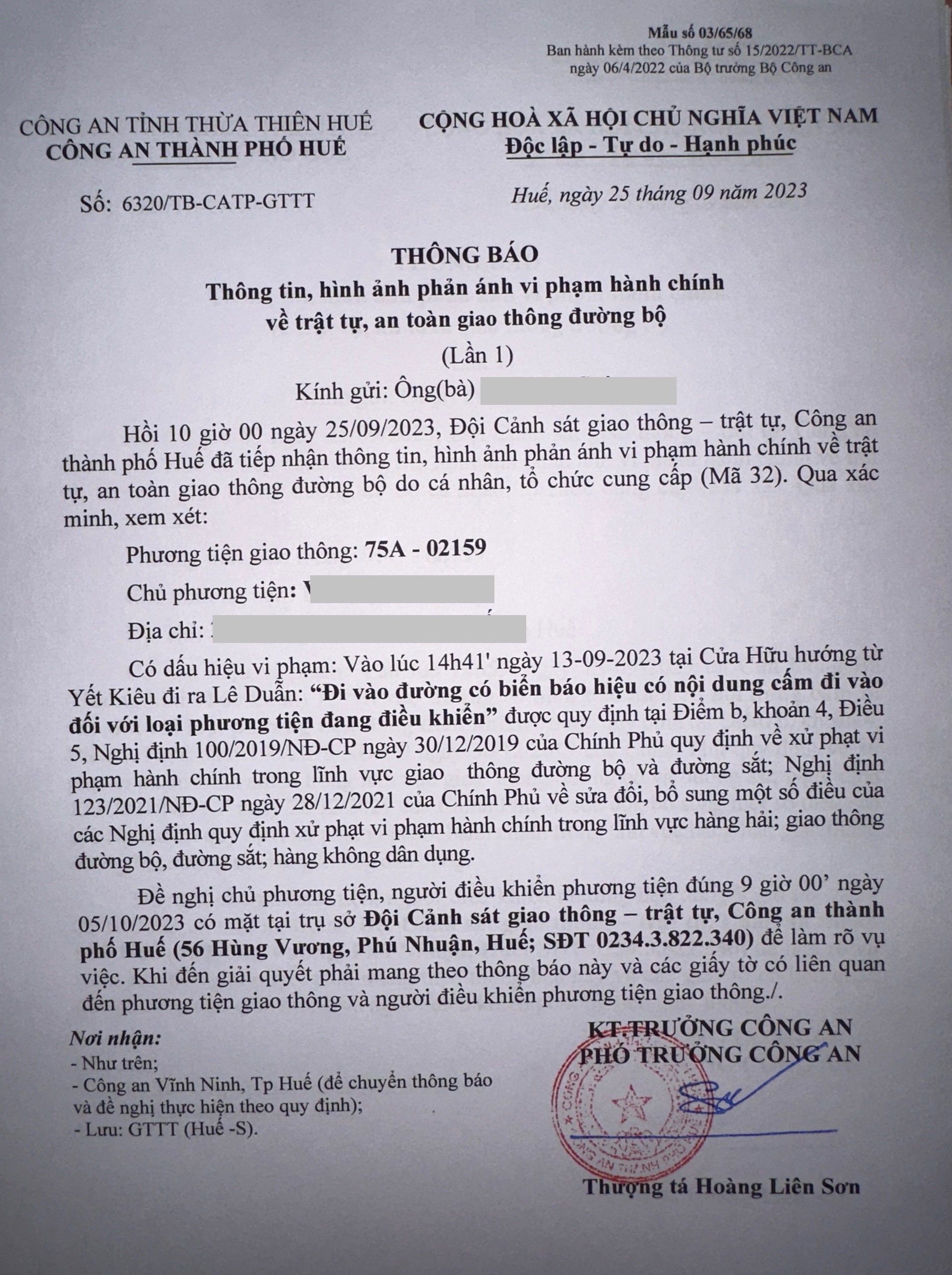 Vấn đề quý Ông/Bà phản ánh, Công an tỉnh đã chỉ đạo Công an thành phố Huế kiểm tra và xin thông báo kết quả xử lý như sau: