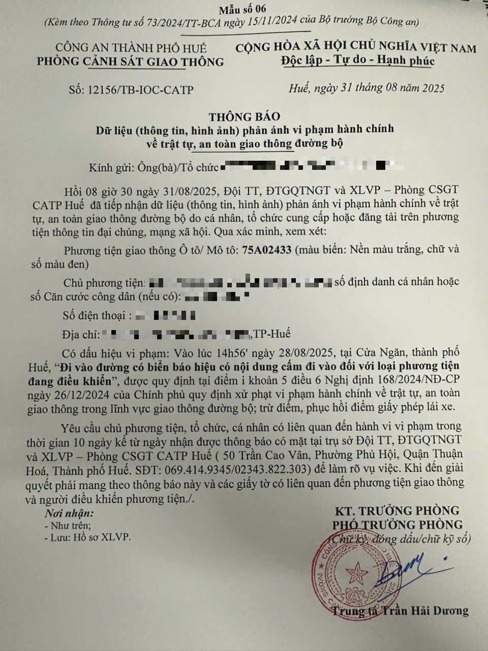 Vấn đề quý Ông/Bà phản ánh, Phòng Cảnh sát giao thông – Công an thành phố Huế đã kiểm tra và xin thông báo kết quả như sau: