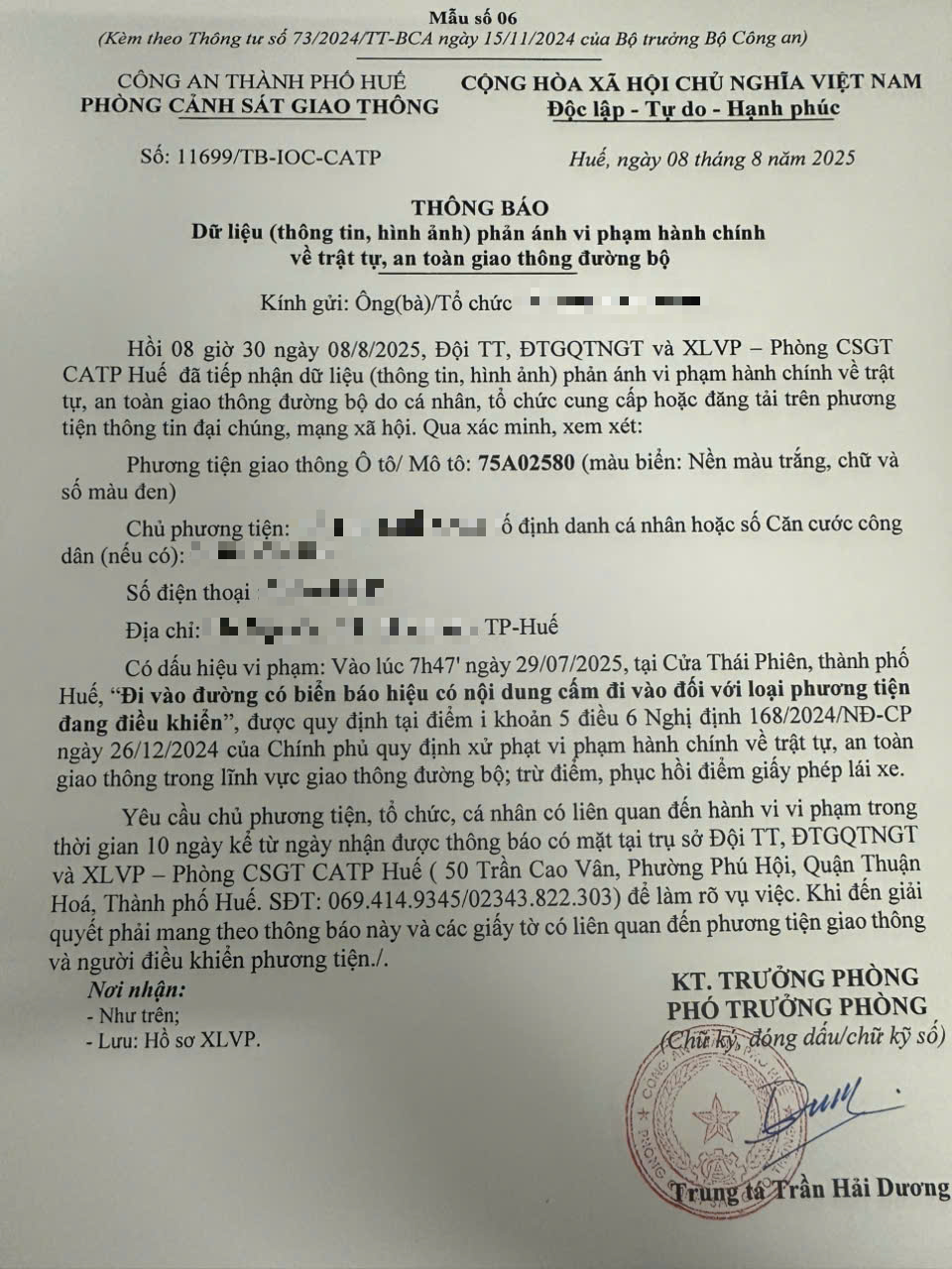 Vấn đề quý Ông/Bà phản ánh, Phòng Cảnh sát giao thông – Công an thành phố Huế đã kiểm tra và xin thông báo kết quả như sau: