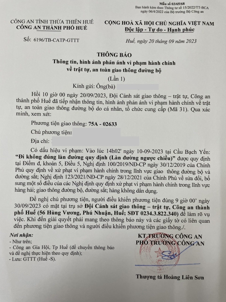 Vấn đề quý Ông/Bà phản ánh, Công an tỉnh đã chỉ đạo Công an thành phố Huế kiểm tra và xin thông báo kết quả như sau: